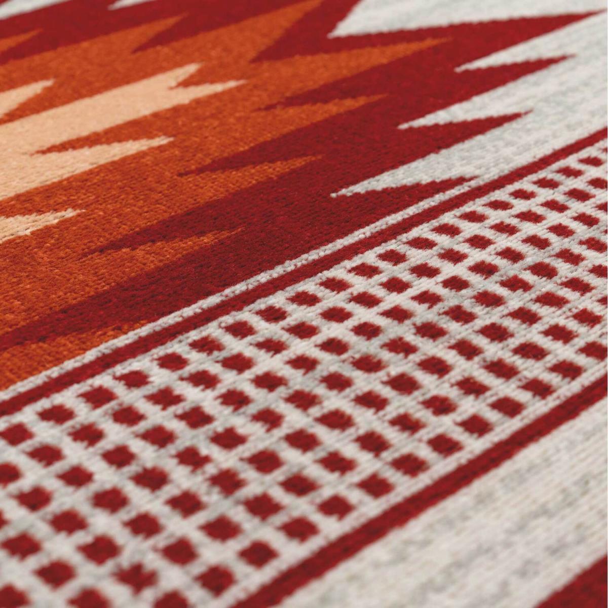 This warm orange terracotta tribal rug is a fantastic statement piece that adds colour and texture to a range of interiors. I love it for its versatility; it works particularly well in both modern and boho schemes, where its earthy tones and geometric pattern can bring warmth and visual interest. For practical styling tips, pair it with neutral or white furnishings to let the rug be the focal point, or layer it with other textured textiles like cushions or throws to create a cosy, inviting space. Its low pile makes it comfortable underfoot and easy to maintain, making it ideal for living areas where functionality is key without sacrificing style.