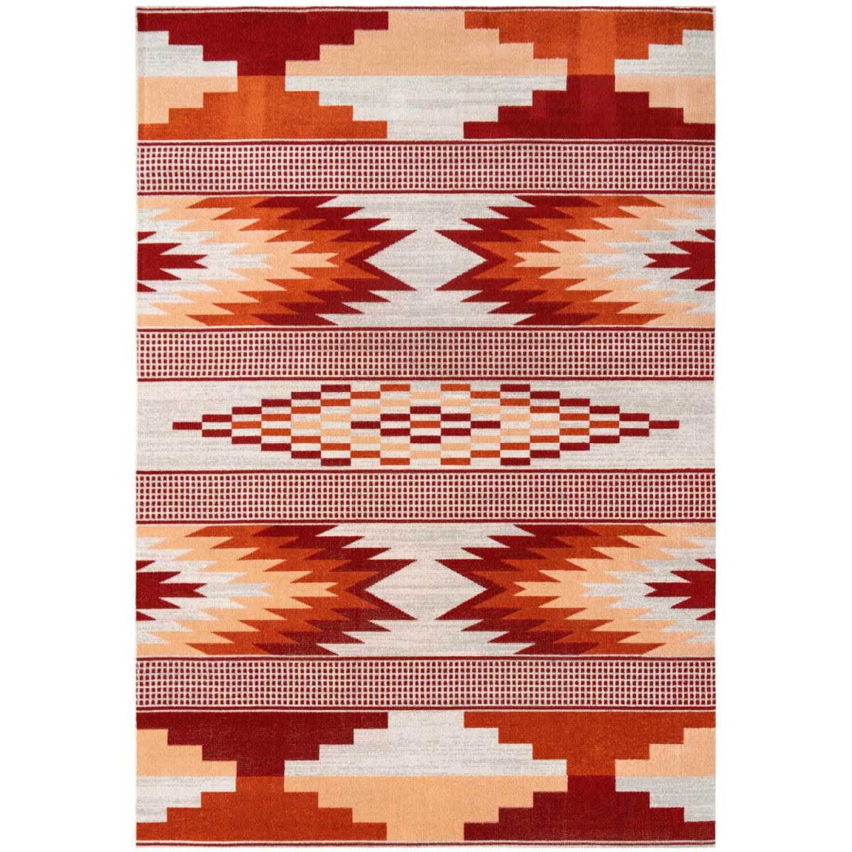 Warm Orange Terracotta Tribal Geometric Low Pile Soft Living Area Rug - Terracotta / 150cm