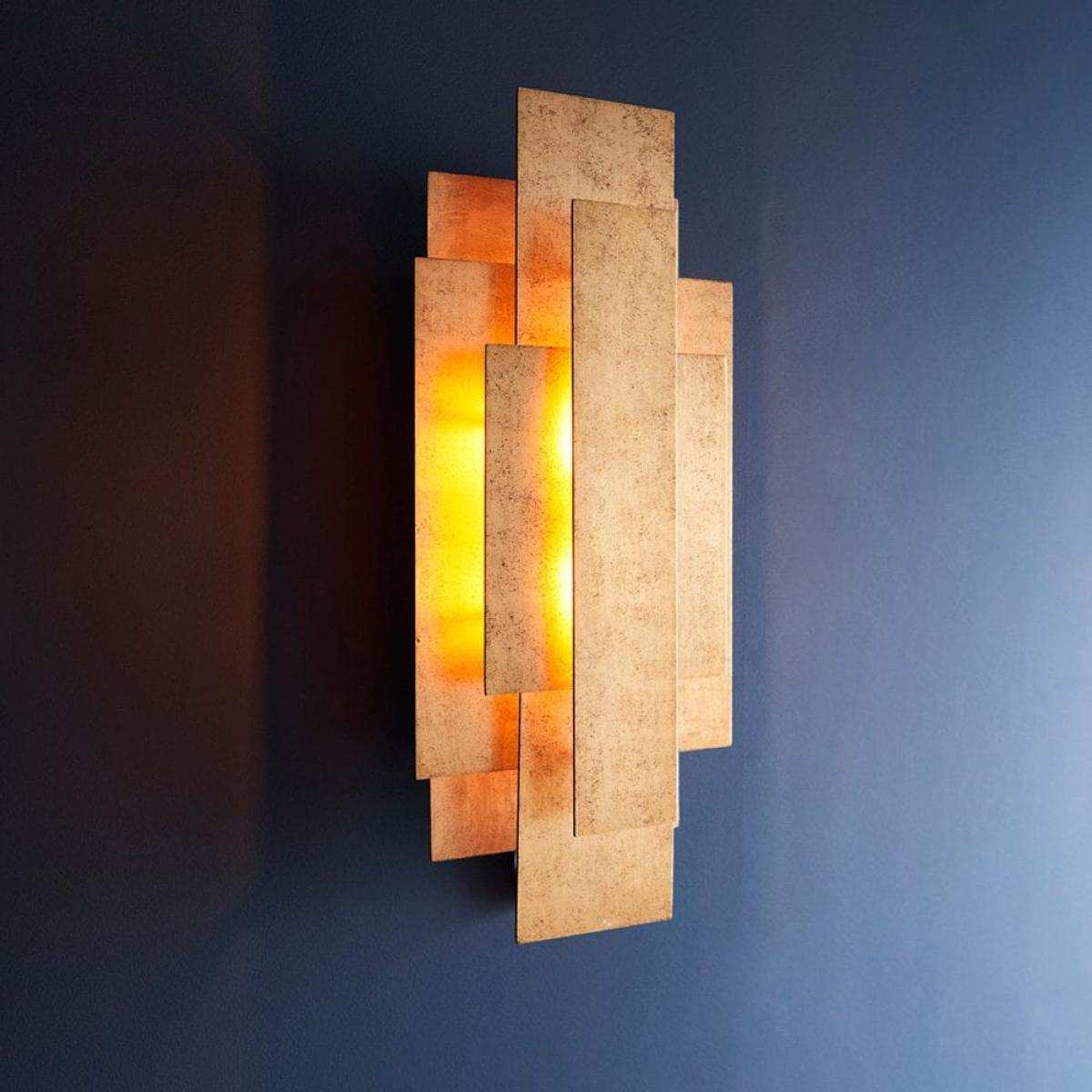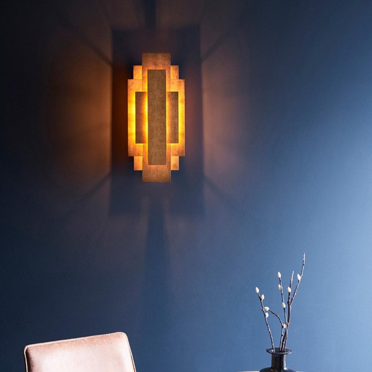 The Warner Wall Light is the perfect addition to any room, adding a touch of elegance with its striking shape and finish. With the hand-finished antique gold leaf layering, each light will have its own pattern making the Warner unique to you. The tiered design creates an opulent piece, reminiscent of art deco design, and allows the light to filter through gently across your room. With a dimmable function, it's perfect for low lighting spaces such as living rooms and bedrooms.