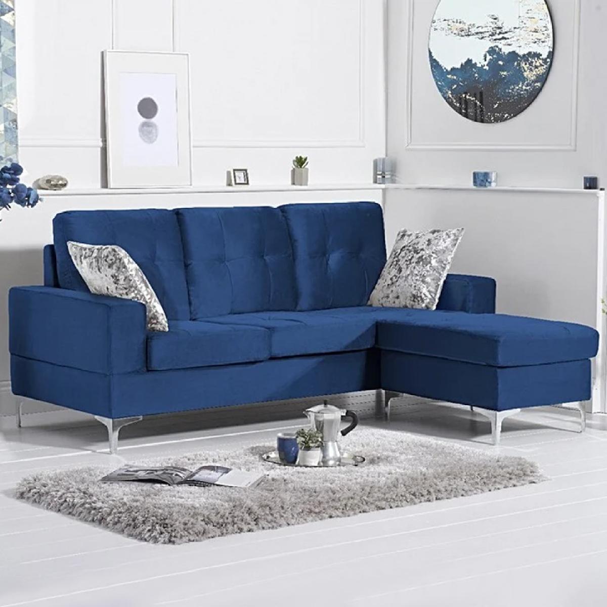 Warren Blue Velvet Reversible 3 Seater Corner Chaise Sofa