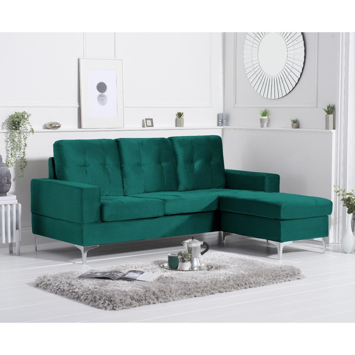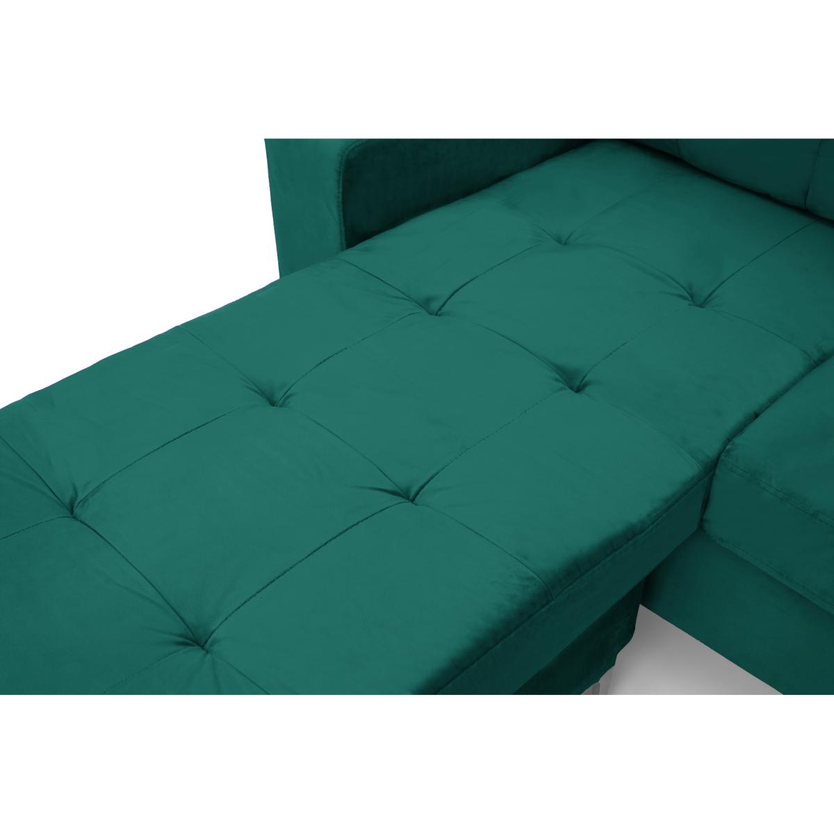 Warren Green Velvet Reversible 3 Seater Corner Chaise Sofa