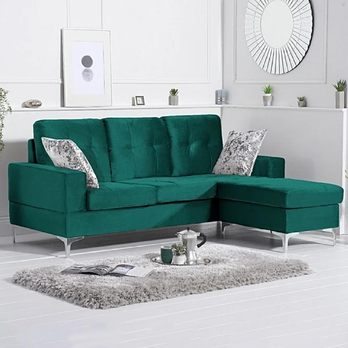 Warren Green Velvet Reversible 3 Seater Corner Chaise Sofa