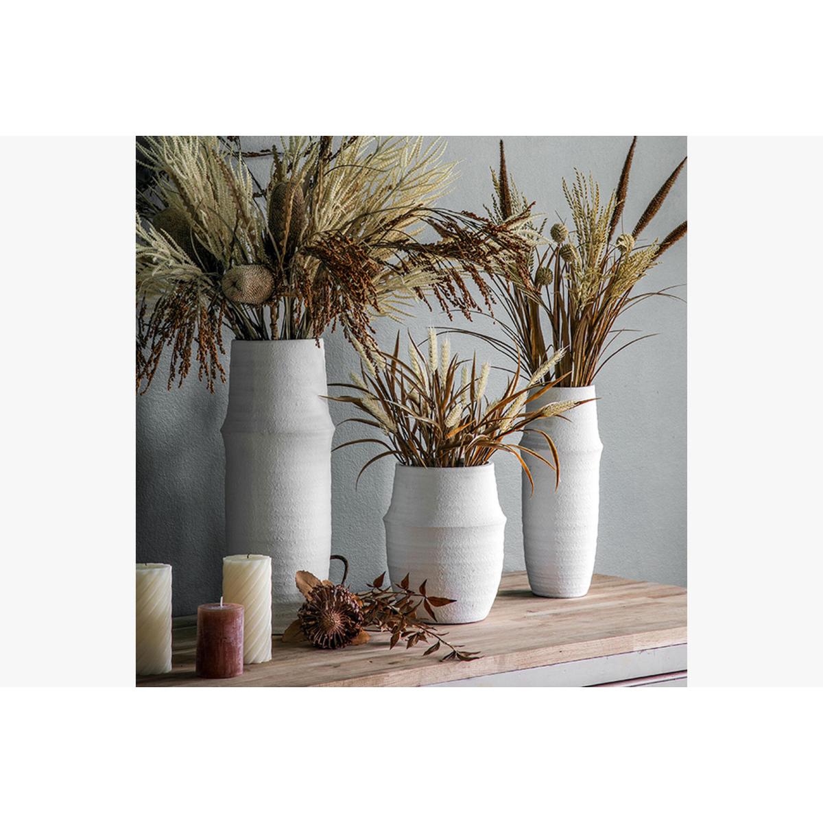 The stunning simplicity of the Warren vase is hard to deny. In clean fresh white with a subtle texture the Warren vase is light and bright, adding a contemporary feel to any space. Perfect for displaying sprays of sculptural dried and faux flowers.