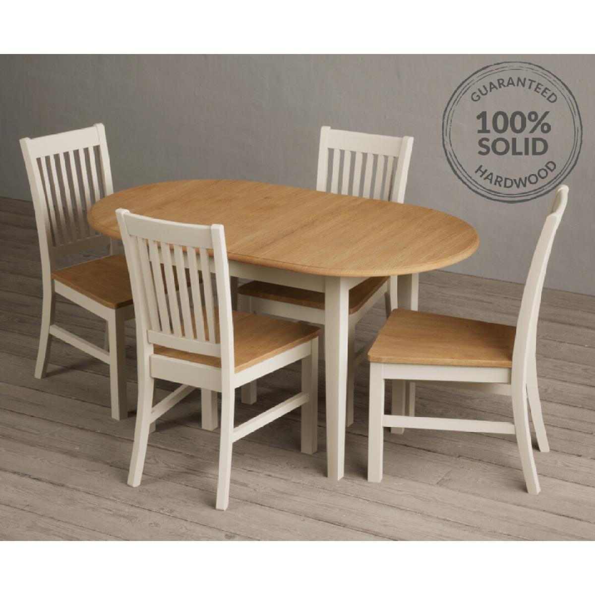 Warwick Oak and Cream Painted Extending Dining Table With 4 Brown Warwick Chairs