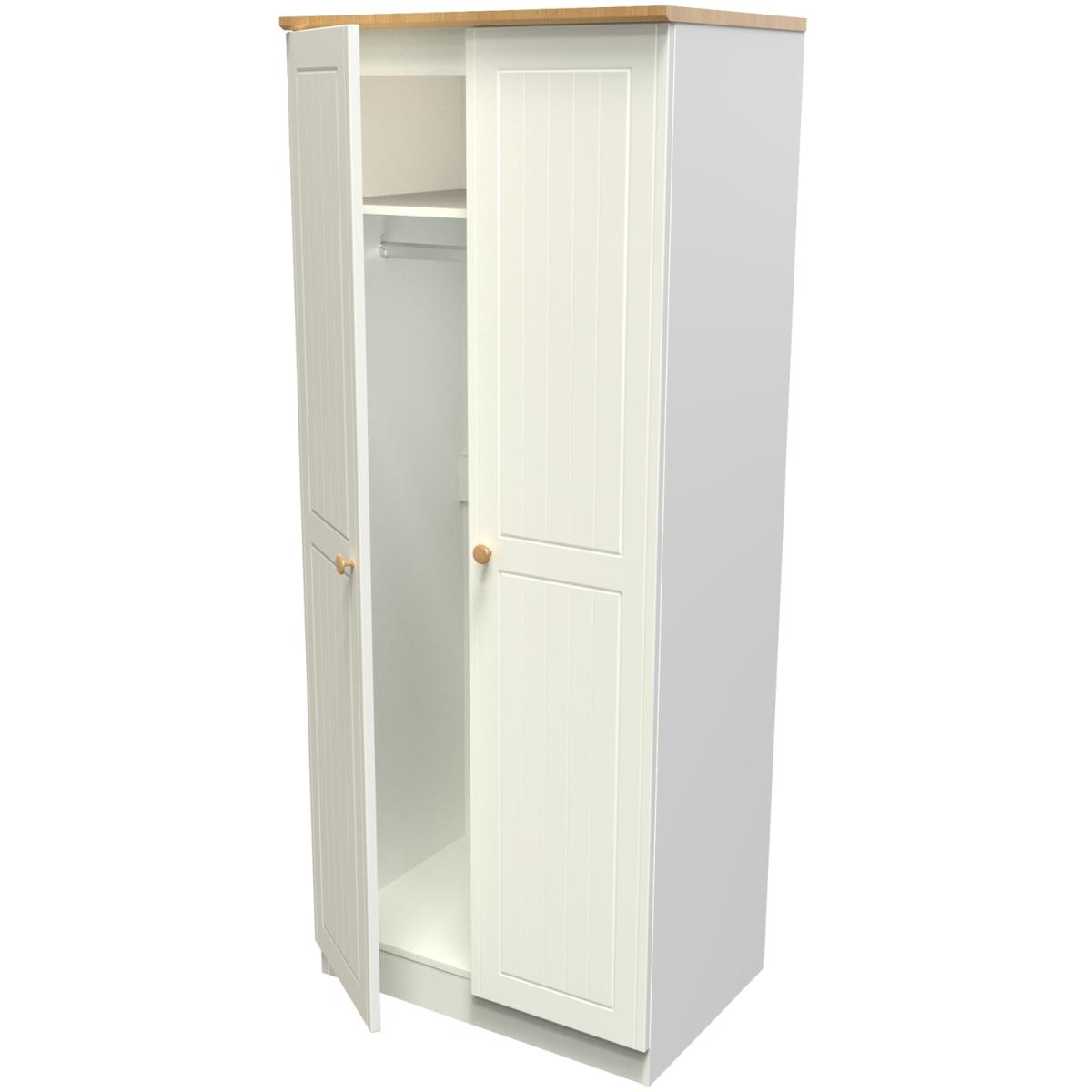 This full height double door wardrobe is perfect for any bedroom.. The natural beauty of the Warwick bedroom range is complemented with curved tops and a variety of colour options. Enhanced by a delicate grooved design on all doors and drawers, with optional contrasting oak effect tops and handles this stunning bedroom range will suit any interior. All our furniture is made in the United Kingdom, to the highest quality. It is delivered direct to your location of choice by one of our two man delivery teams, and come full assembled (although legs may be removed to prevent damage in transit).