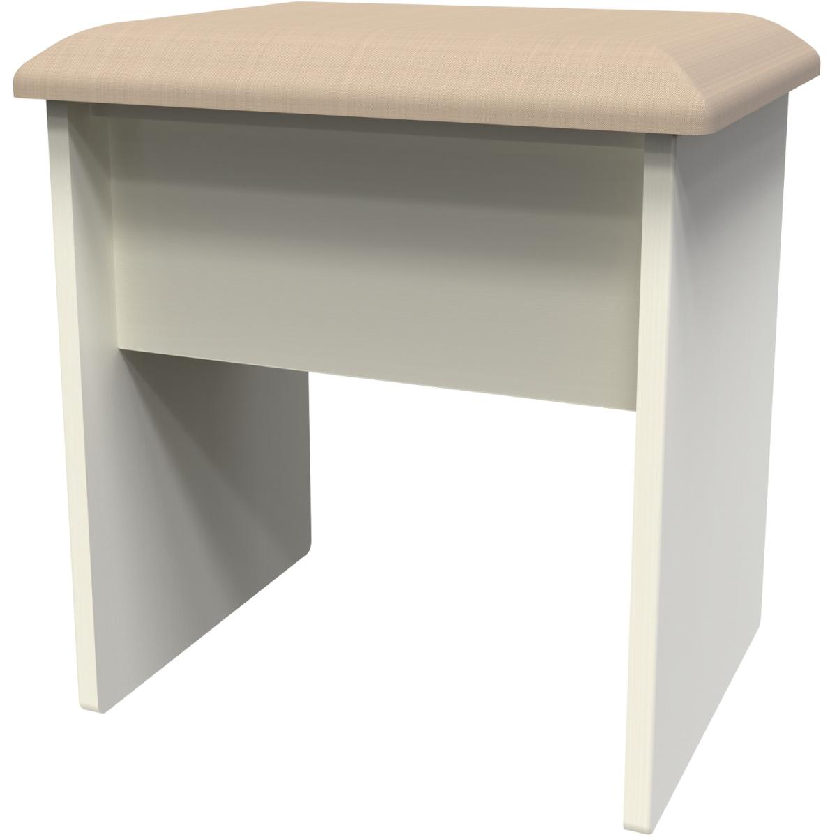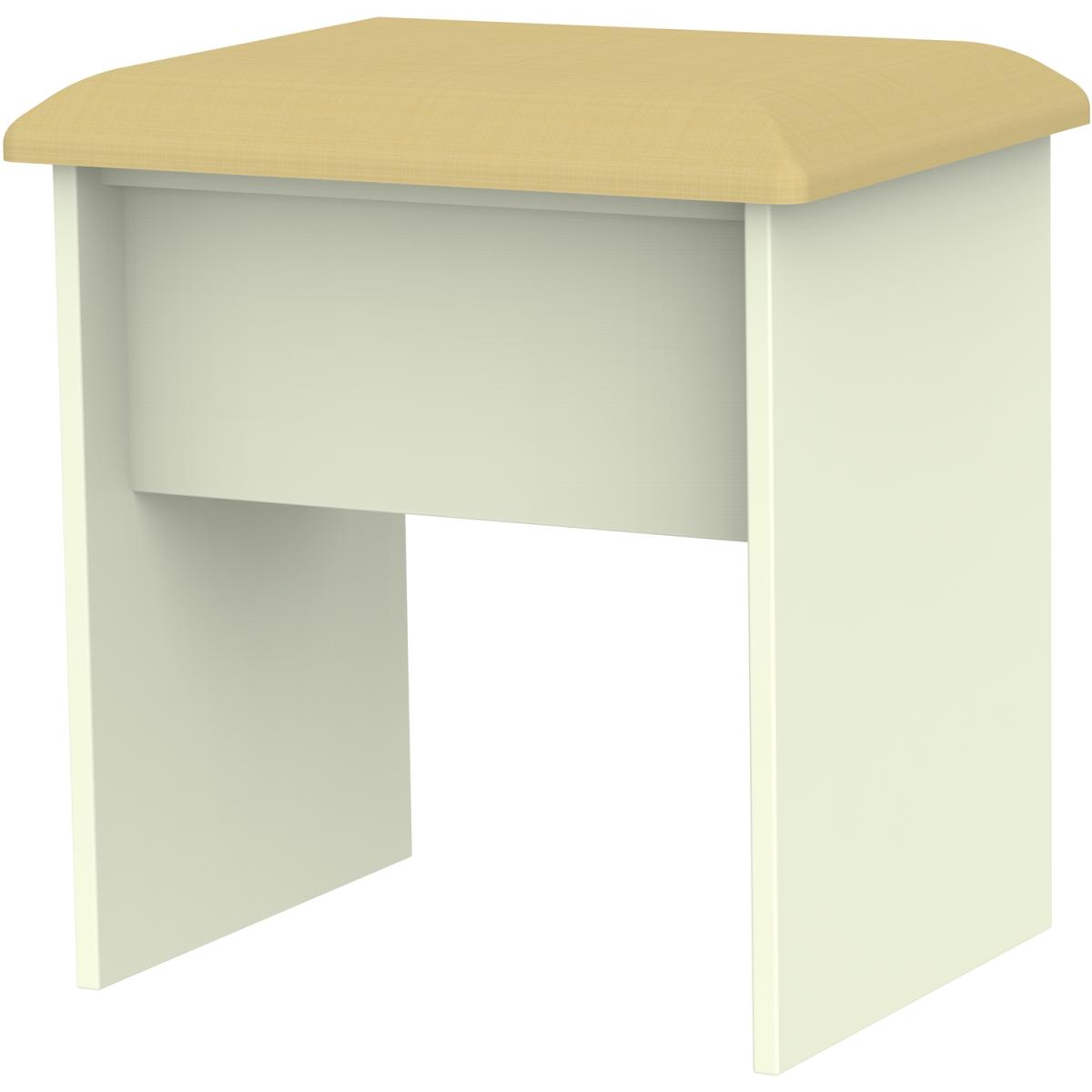A small vanity stool. A light simple, yet sturdy design, with a soft cushioned seat. Makes an idea companion to a desk or vanity. The natural beauty of the Warwick bedroom range is complemented with curved tops and a variety of colour options. Enhanced by a delicate grooved design on all doors and drawers, with optional contrasting oak effect tops and handles this stunning bedroom range will suit any interior. All our furniture is made in the United Kingdom, to the highest quality. It is delivered direct to your location of choice by one of our two man delivery teams, and come full assembled (although legs may be removed to prevent damage in transit).