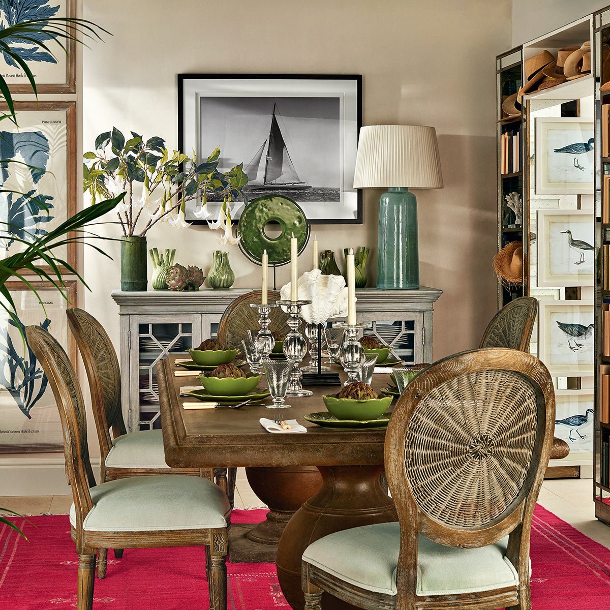 I love the Washakie chair - its stonewashed Eau de Nil finish adds a lovely, subtle colour that works well in a variety of interiors. It’s particularly great for traditional or vintage-inspired dining rooms, where its rustic wooden frame and woven back bring warmth and texture. This chair pairs beautifully with neutral palettes, soft linens, or even bold patterns, providing a versatile seating option. For styling tips, consider adding a layered look with a comfortable cushion or placing it around a wooden or antique table to enhance its character. Its understated elegance makes it adaptable for both classic and boho themes, making it a practical yet stylish choice for various dining spaces.