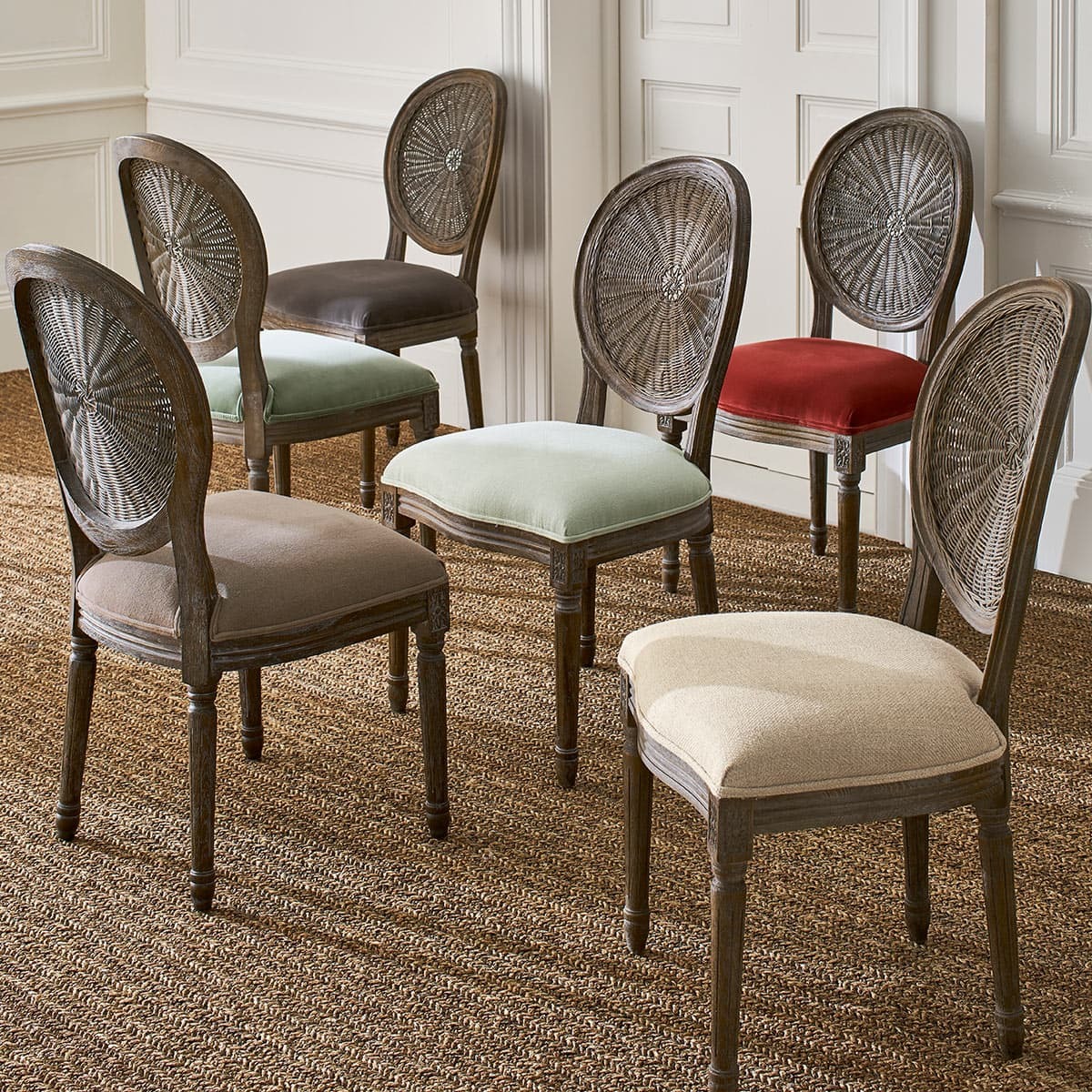 I love this chair for its classic yet versatile look. The sand herringbone linen adds a subtle texture that works well in both traditional and modern interiors, creating a sophisticated but approachable dining space. It’s an excellent choice for softer colour schemes, paired with muted tones or neutrals, but can also complement earthy palettes or layered with colourful accessories. Practical styling tips include mixing it with other upholstered or wooden chairs for visual interest, and keeping the table setup simple to let the chair’s design shine. Its neutral tone means it’s flexible enough to work in various settings, from cosy kitchens to more formal dining rooms.