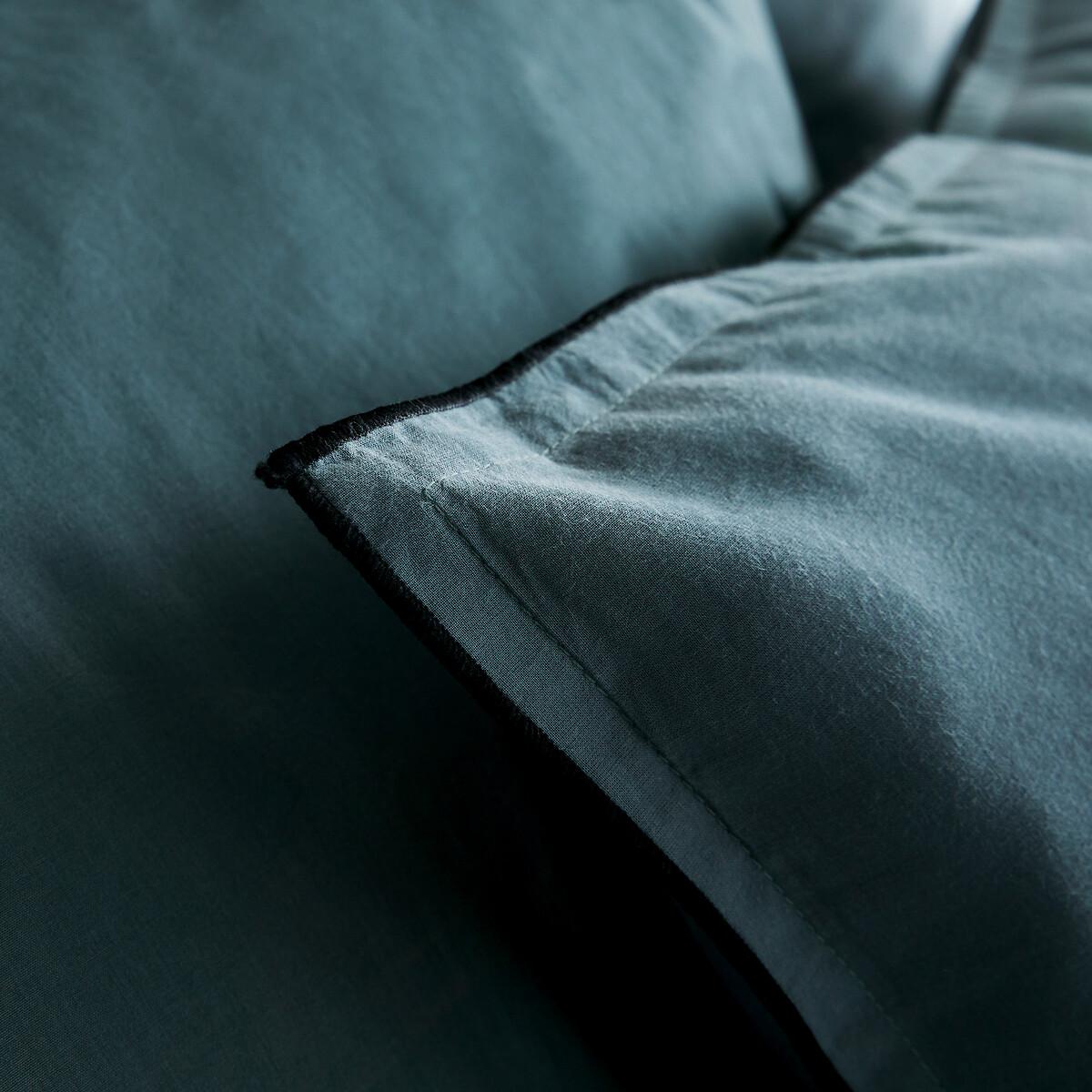 This washed cotton voile bed linen dresses your bedroom with elegance. Extremely soft, supple and light, its texture offers peaceful nights. Washed for a slightly wrinkled appearance, without the need for ironing, it softens over time. Made in Portugal. Product Details • 100% cotton • Organic cotton • Washed cotton voile • Fine contrasting border • Straight buttoned hem • 180 thread count: a common indicator for measuring the quality of fabric is the number of threads per cm². Different sensations are made possible thanks to the weaving and the number of threads present. Indeed, an optimal number of threads makes the bed linen particularly soft. Care Advice Follow our care tips to maintain the quality of your laundry • Machine washable at 40°C • Tumble dry at medium temperature • Iron at average temperature • Do not dry clean. Dimensions • 140 x 200cm: Single • 200 x 200cm: Double • 240 x 220cm: King • 260 x 240cm: King • MADE IN PORTUGAL. • Cotton from organic farming. Organic farming does not use any chemicals, pesticides, insecticides or GMOs. Produced with minimal impact on biodiversity. • OEKO-TEX® Standard 100. Standard 100 certification by OEKO-TEX® tests textile products for harmful substances via an independent, international label.