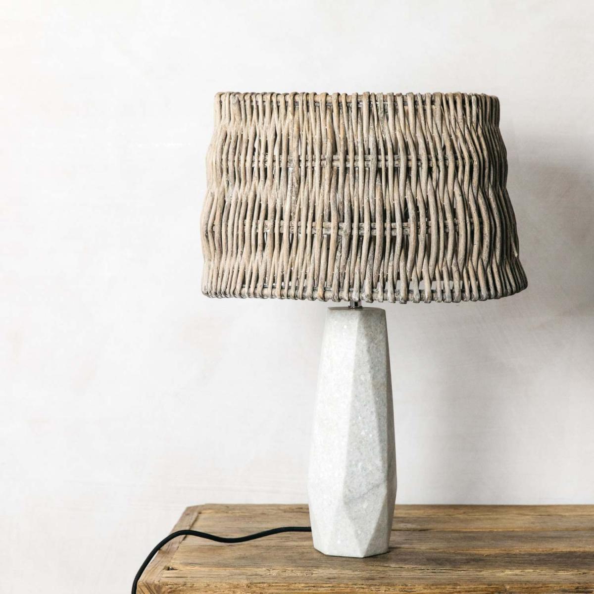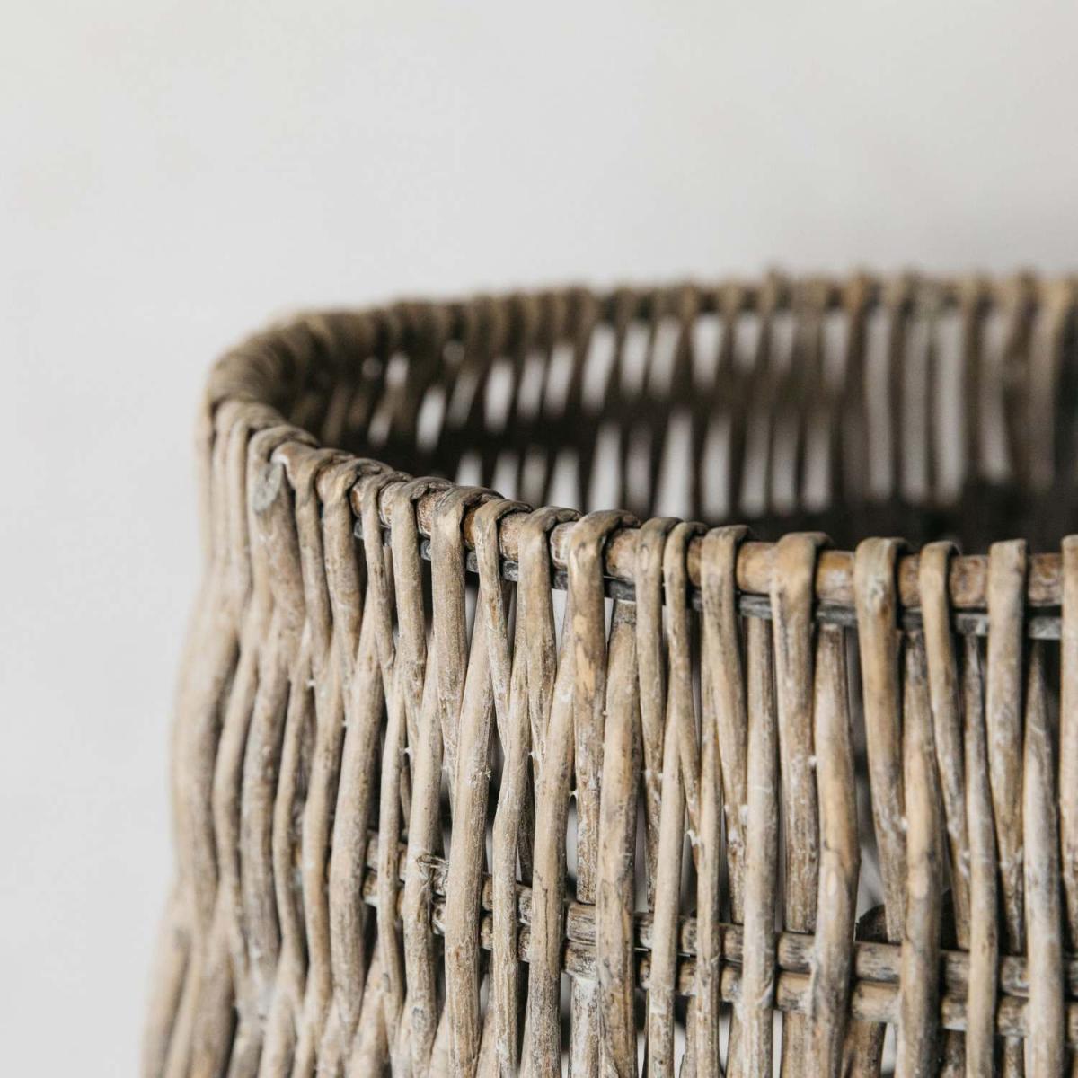 Vertically woven in a grey-washed wicker that has the feel and look of driftwood, this lamp shade will cast a soft dappled light and confer instant character on your room.