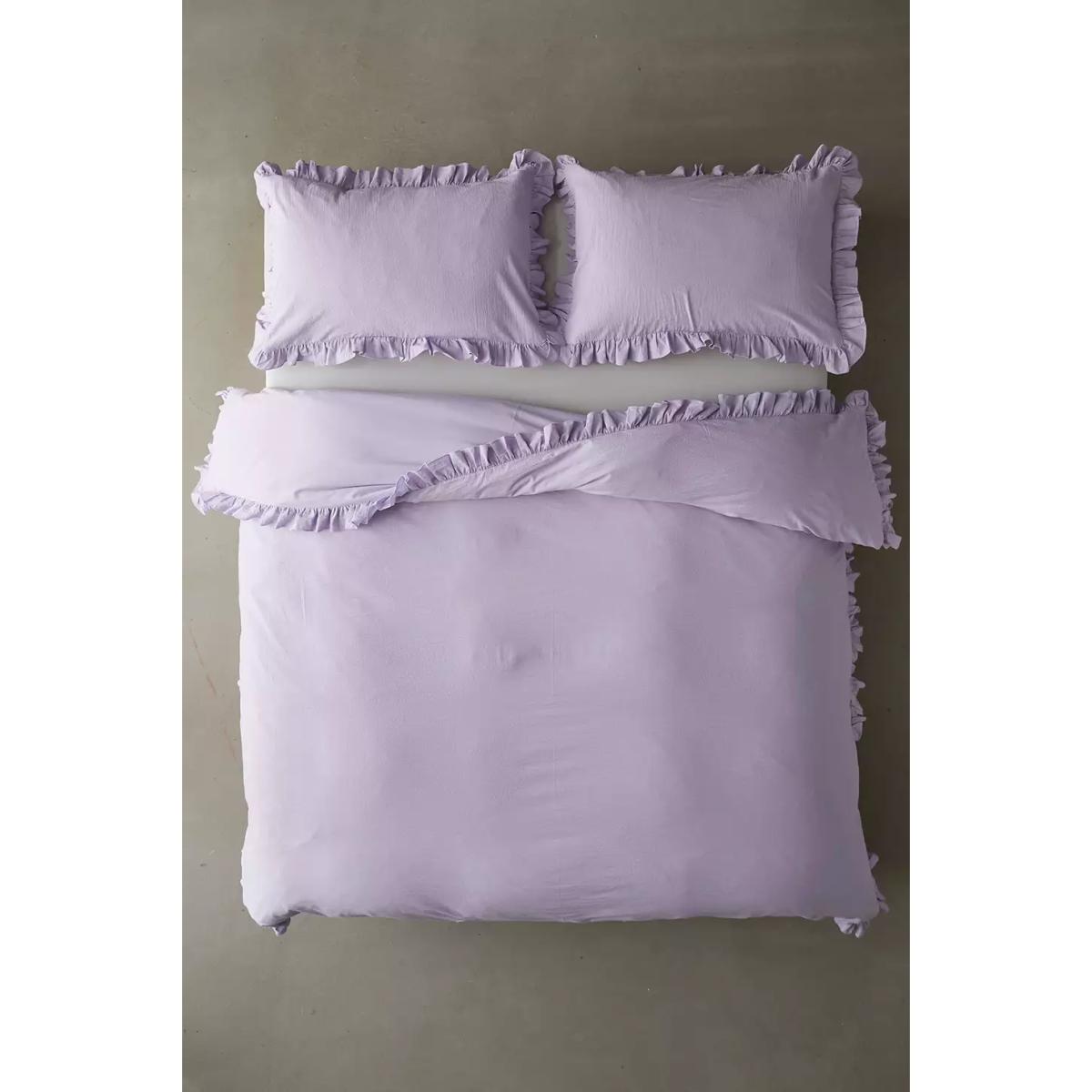 Duvet cover and pillowcase set finished with simple whimsical ruffled edges. The perfect fit for your sleeping space. Pair with any of our other bedding and cushion options (sold separately). **Content + Care** \- 100% Cotton \- Machine wash **Size + Fit** \- Single (includes 1 pillowcase): 135cm (W) x 200cm (H) \- Double (includes 2 pillowcases): 200cm (W) x 200cm (H) \- King (includes 2 pillowcases): 230cm (W) x 220cm (H) \- Pillowcase: 75cm x 50cm
