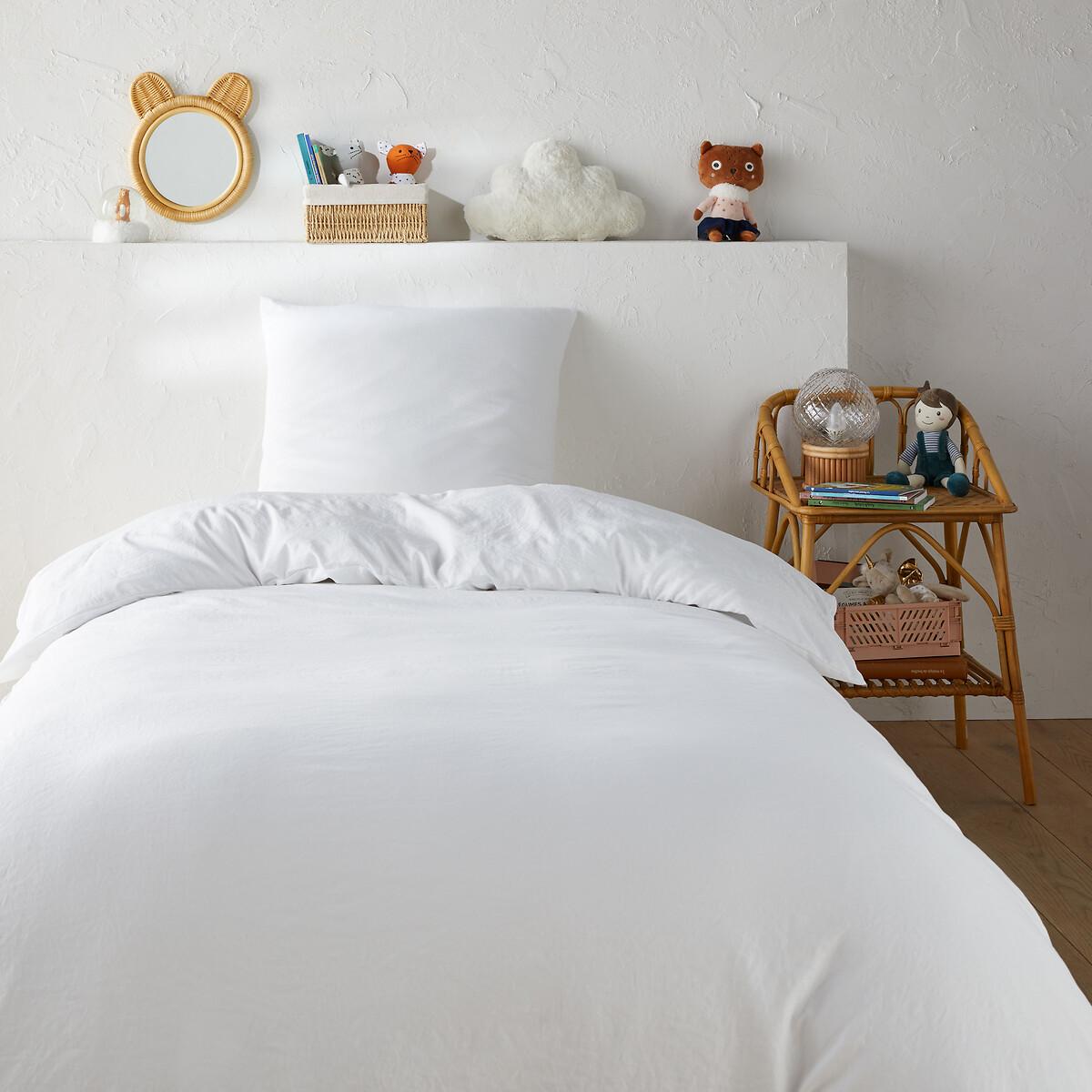A trendy colour palette, a slightly wrinkled matte appearance and an ultra-soft touch: this bed linen is made from washed recycled microfibre, a soft, light, comfortable and easy-to-wear material. Plain, it fits easily into the decoration of a room. This set includes the duvet cover and its matching square pillowcase. Product Details • 100% polyester • Recycled polyester • Washed microfibre • Straight buttoned hem Care Advice • Machine washable at 60°C • By washing your laundry at 40°C instead of 60°C, you limit energy consumption. Dimensions • Duvet cover 140 x 200cm + 1 pillowcase 63 x 63cm : Single • Duvet cover 200 x 200cm + 1 pillowcase 63 x 63cm: Double • Recycled polyester. Using recycled polyester is all about conserving resources and reducing waste.