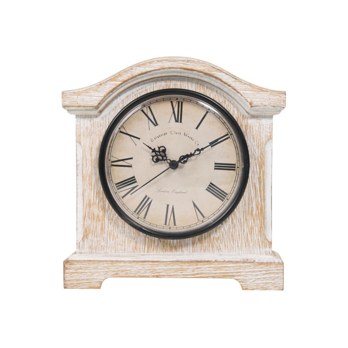 Add a touch of vintage charm to your home with the Washed Wood Effect Mantle Clock. This clock features an antique-style design with a washed wood finish, bringing warmth and charm to your space. The Roman numerals enhance its appeal, giving it an elegant finishing touch. Perfect for mantels, tables, and sideboards, this clock is sure to elevate your home's decor.