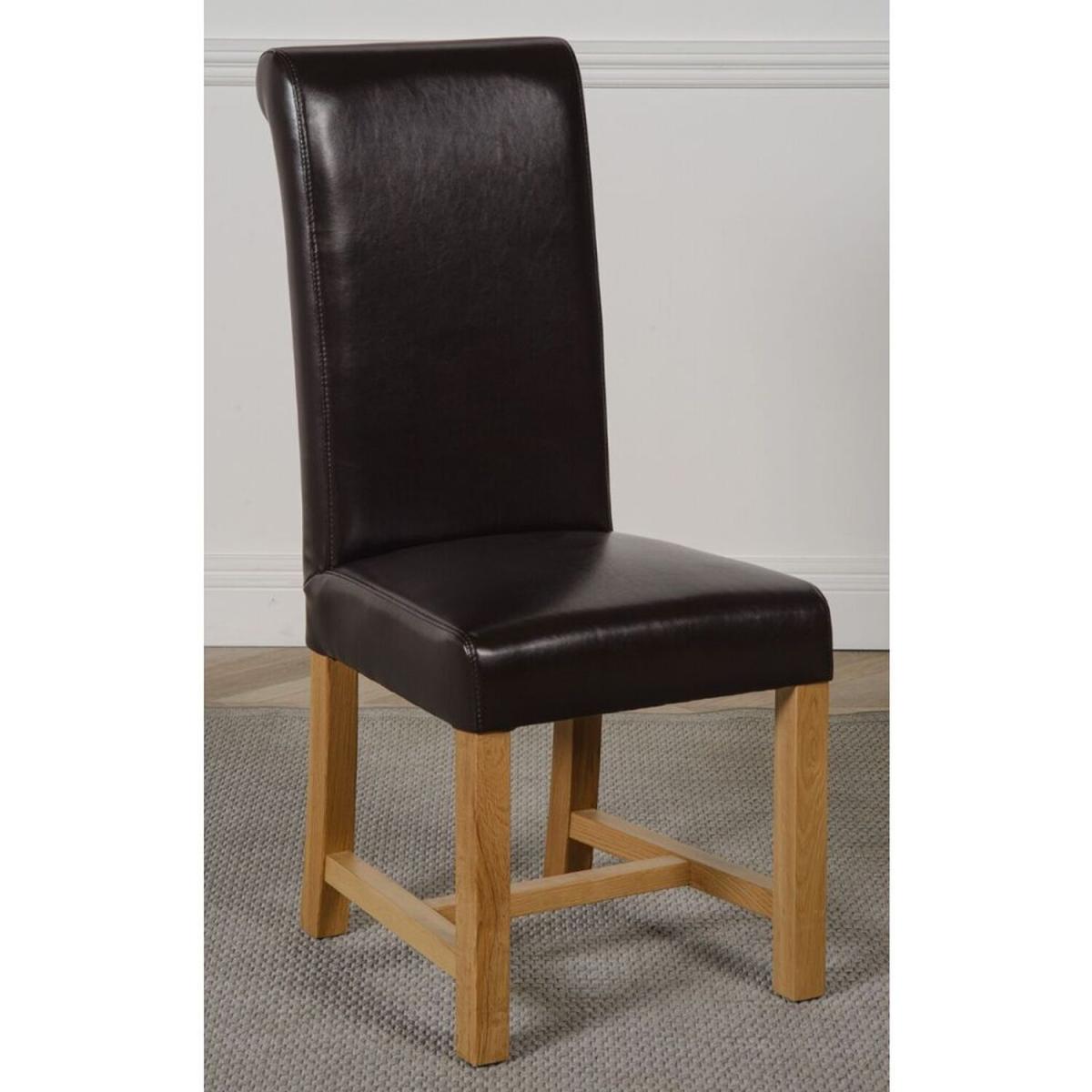 pA classic high back dining chair, the Washington luxury dining chairs are ideal for use in the dining room, kitchen, living room, as dressing table chairs, or even in your home office as a desk chair. Handmade by skilled craftsmen, the Washington dining chair is upholstered in a sumptuously supple bonded leather and features a beautifully crafted roll top design and classic braced legs for extra stability and strength.p p. A classic high back dining chair, the Washington luxury dining chairs are ideal for use in the dining room, kitchen, living room, as dressing table chairs, or even in your home office as a desk chair. Handmade by skilled craftsmen, the Washington dining chair is upholstered in a sumptuously supple bonded leather and features a beautifully crafted roll top design and classic braced legs for extra stability and strength.pp. Medium density deluxe padding and S sprung seats make the Washington dinning chairs super comfortable, providing extra support and comfort especially when sitting for longer periods of time.pp. The Washington kitchen dining chair has a hardwood internal frame and braced solid oak legs providing exceptional stability and strength with the added benefit of anti-scratch nylon glides fitted to the legs to protect your floor.pp. This fully upholstered chair is available in black, brown, ivory or burgundy colour options.pp. The Washington leather kitchen chairs are delivered fully assembled. Our Kitchen table chairs are made to strict British Standards and come with a full 12 month warranty.p