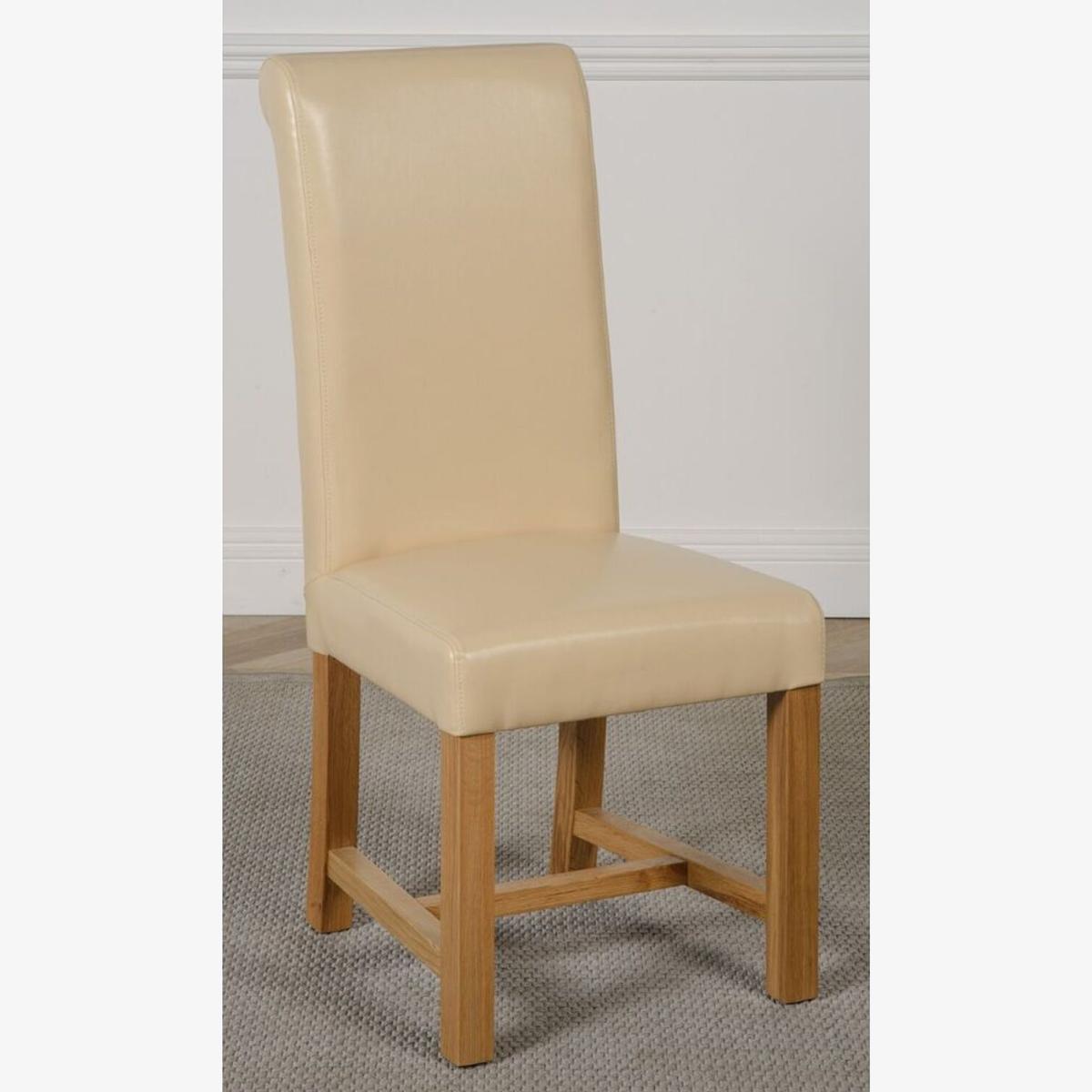 pA classic high back dining chair, the Washington luxury dining chairs are ideal for use in the dining room, kitchen, living room, as dressing table chairs, or even in your home office as a desk chair. Handmade by skilled craftsmen, the Washington dining chair is upholstered in a sumptuously supple bonded leather and features a beautifully crafted roll top design and classic braced legs for extra stability and strength.p p. A classic high back dining chair, the Washington luxury dining chairs are ideal for use in the dining room, kitchen, living room, as dressing table chairs, or even in your home office as a desk chair. Handmade by skilled craftsmen, the Washington dining chair is upholstered in a sumptuously supple bonded leather and features a beautifully crafted roll top design and classic braced legs for extra stability and strength.pp. Medium density deluxe padding and S sprung seats make the Washington dinning chairs super comfortable, providing extra support and comfort especially when sitting for longer periods of time.pp. The Washington kitchen dining chair has a hardwood internal frame and braced solid oak legs providing exceptional stability and strength with the added benefit of anti-scratch nylon glides fitted to the legs to protect your floor.pp. This fully upholstered chair is available in ivory, brown, black or burgundy colour options.pp. The Washington leather kitchen chairs are delivered fully assembled. Our Kitchen table chairs are made to strict British Standards and come with a full 12 month warranty.p