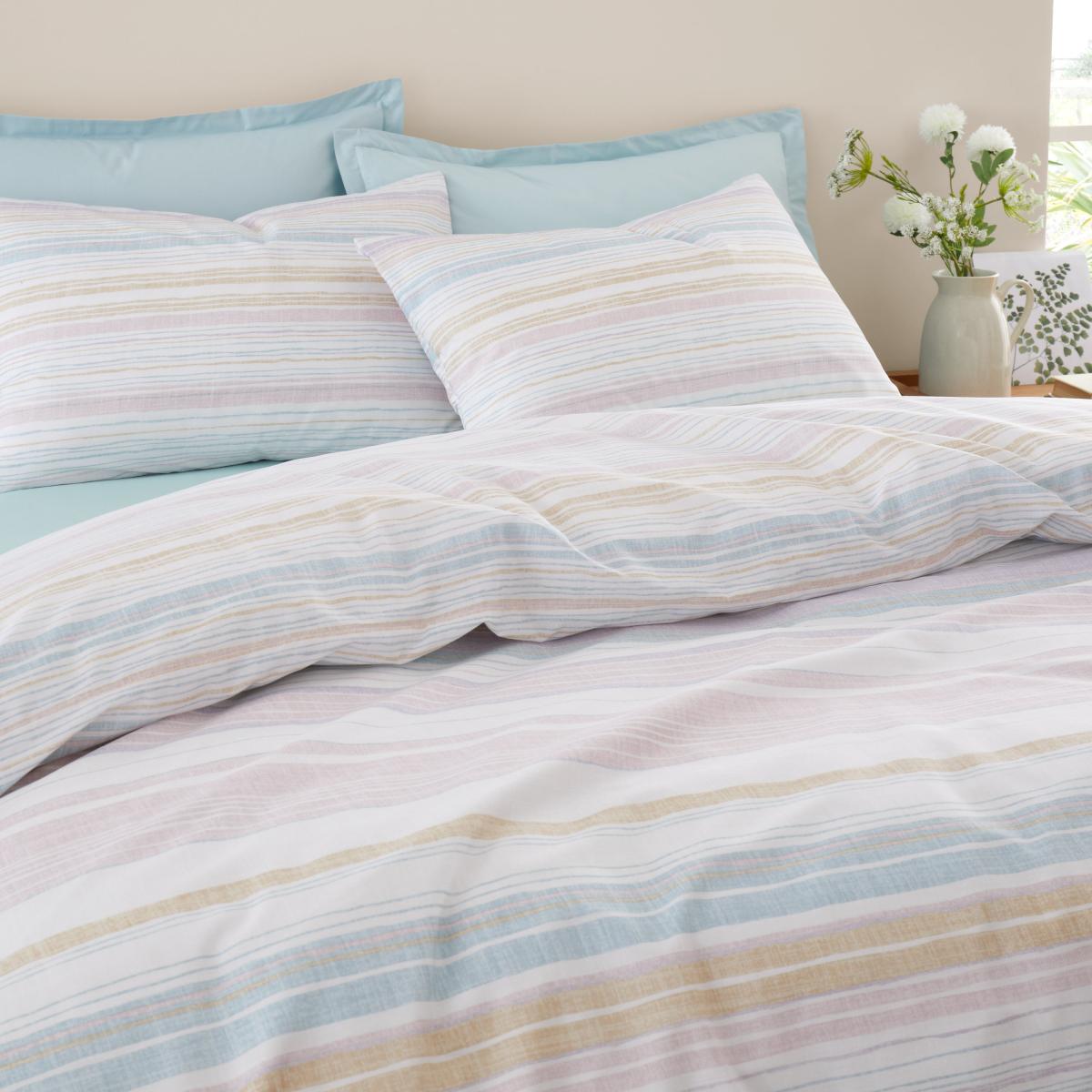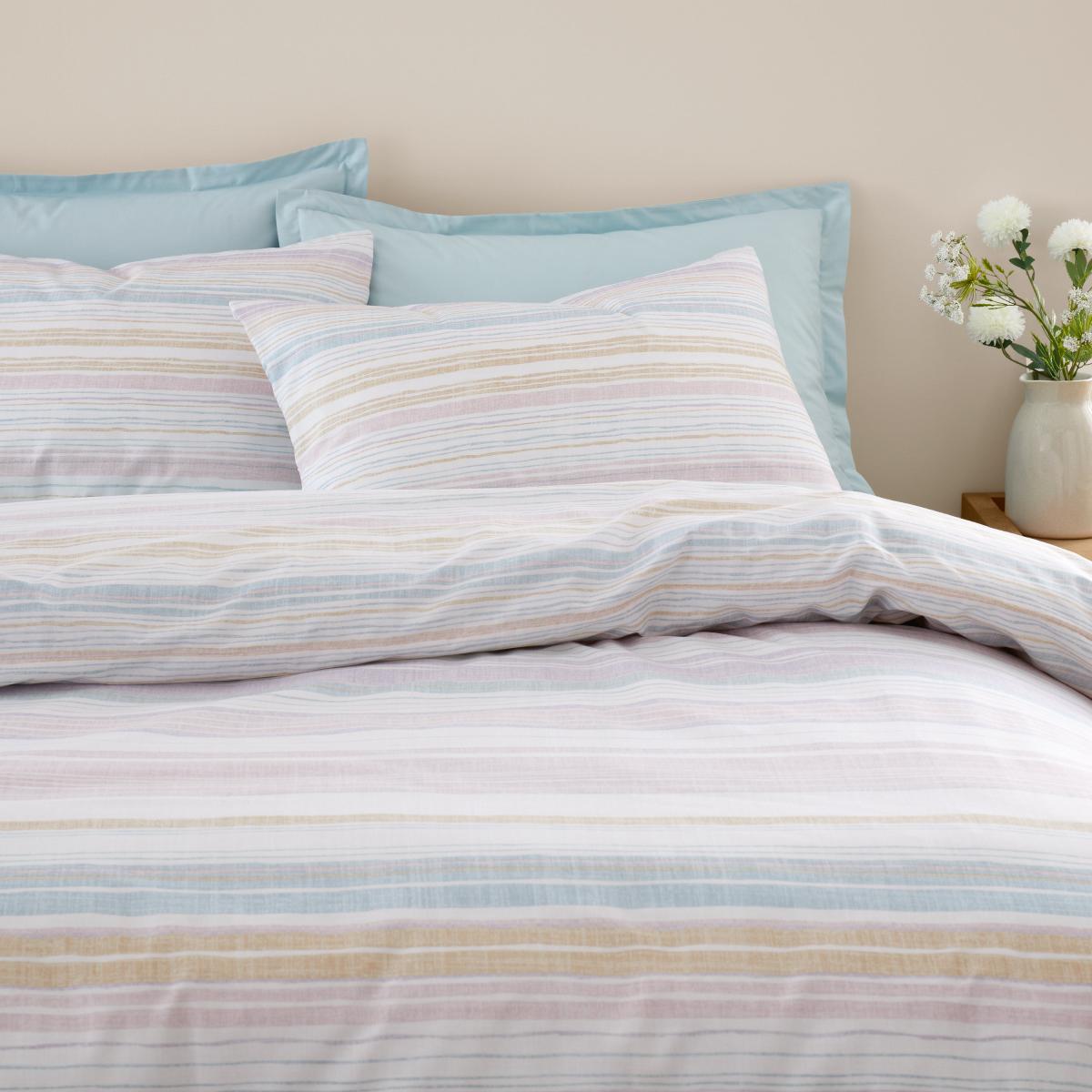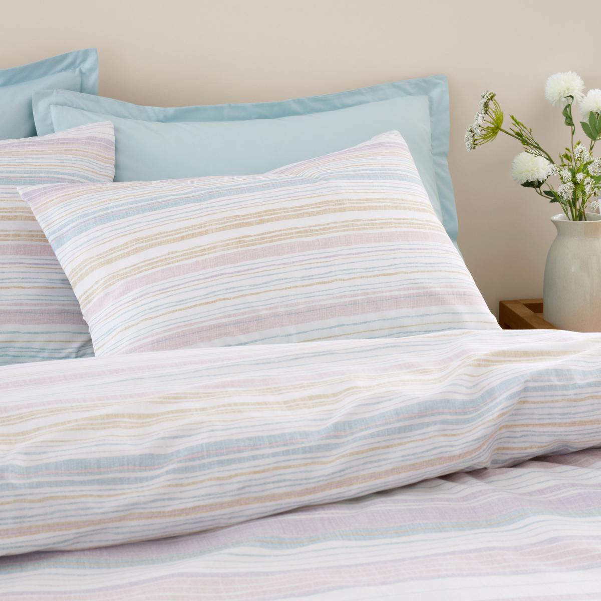 * Breathable cotton and Tencel™ Lyocell fibre blend composition * Sophisticated stripe design * Machine washable * Button closure * Includes standard pillowcase(s) * Machine Washable Add a splash of subtle colour to your bedroom with the Washy Stripe Duvet Cover Set. Featuring a sophisticated washed stripe in soothing pastel tones, this set brings a light, cheerful ambiance to any space. The cotton and Tencel™ Lyocell fibre blend ensures ultimate softness, breathability, and a cool, refreshing sleep experience. Designed with a button closure and standard pillowcase(s), it’s also machine washable, combining style with everyday practicality. This collection is verified by OEKO-TEX® and independently tested for harmful substances as well as manufactured using sustainable processes under socially responsible working conditions. MADE IN GREEN by OEKO-TEX® is a unique product label to trace the countries and production facilities - search the product label for more information.