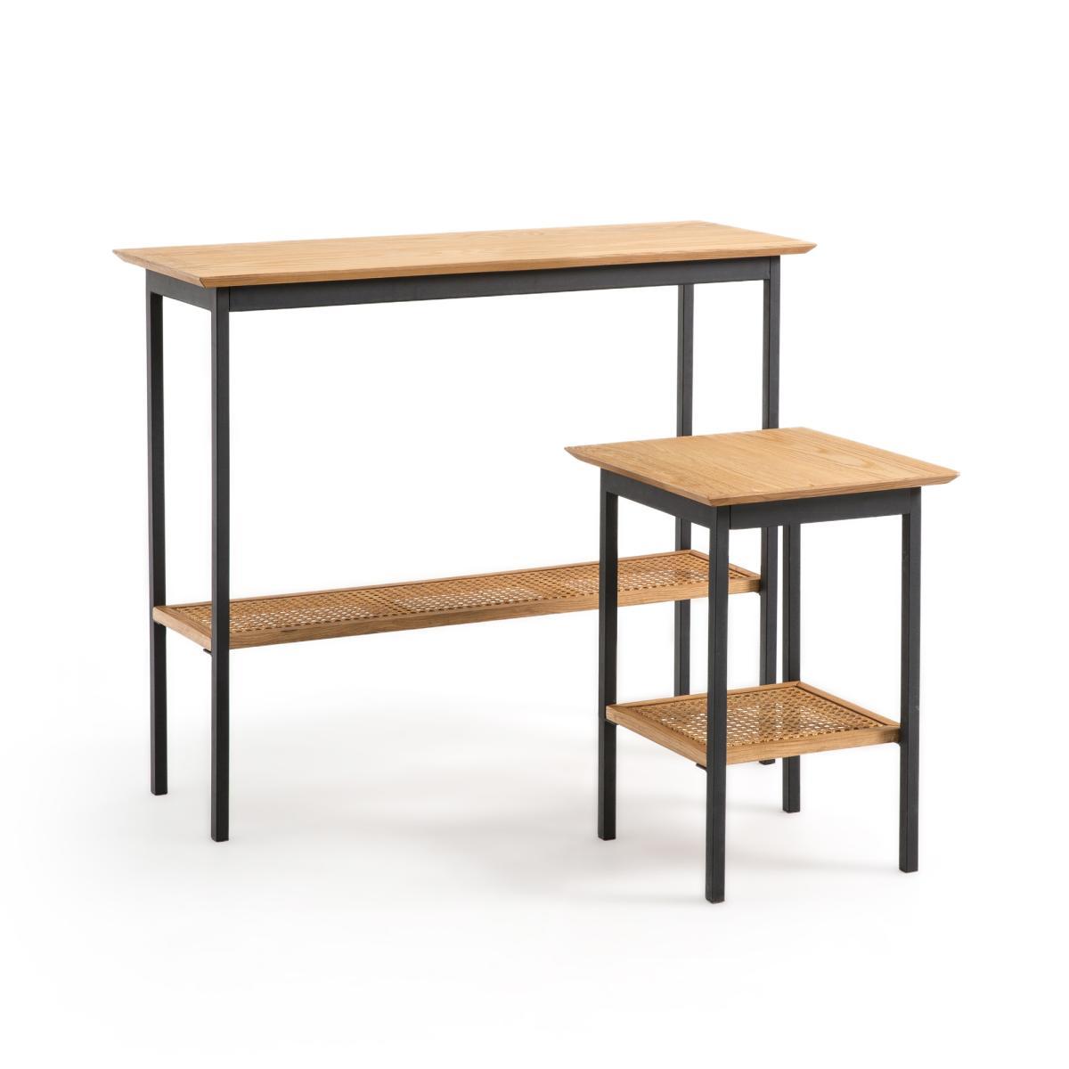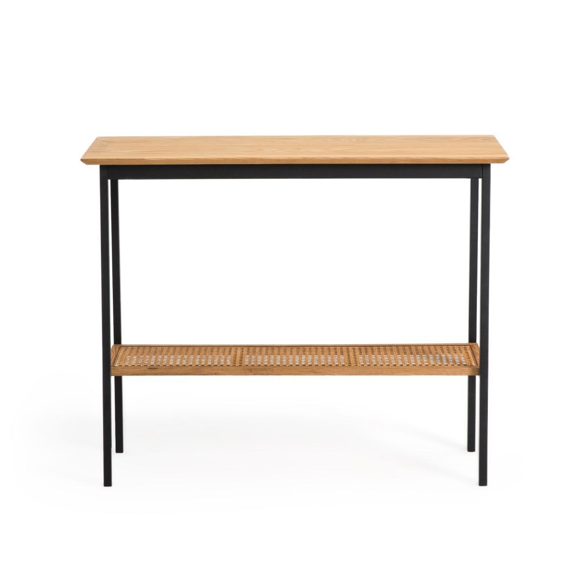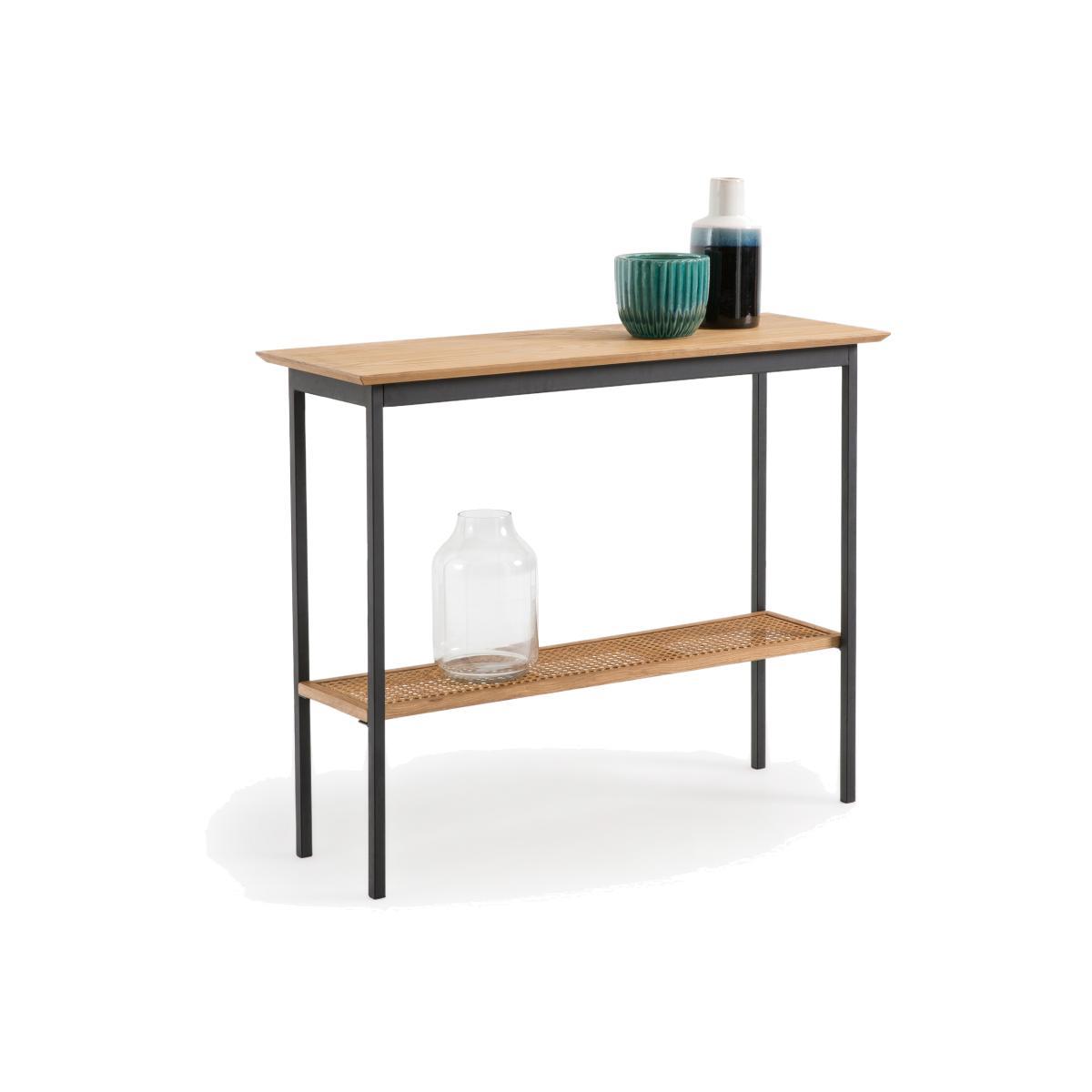 The WASKA console table. This chic table has a natural feel and a vintage look thanks to the combination of metal, oak and rattan.