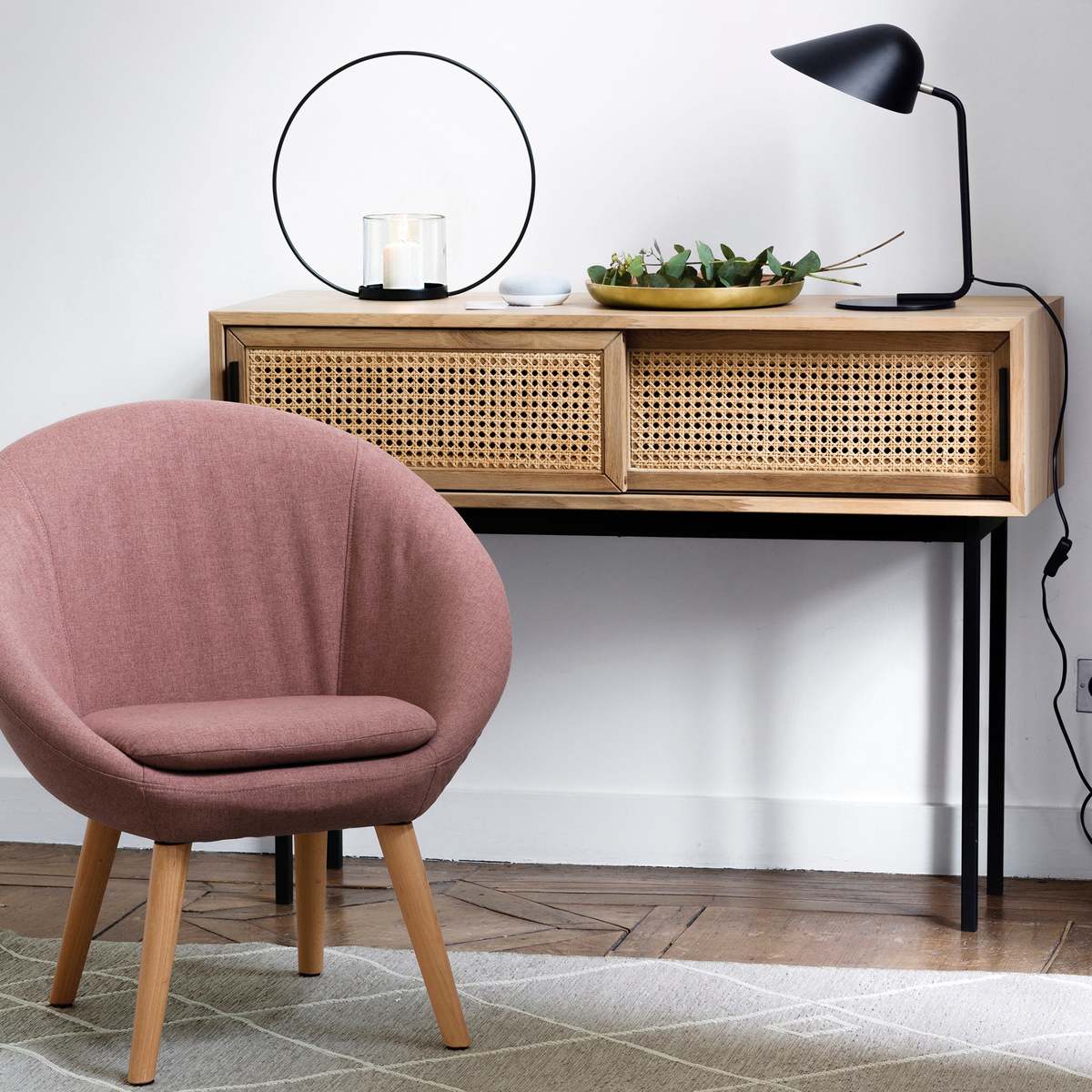 I really like this console table for its stylish yet understated look. The mix of rattan and oak gives it a natural, warm feel that works well in both contemporary and boho interiors. It's particularly suited to entryways, living rooms, or bedrooms where you want a functional piece with visual interest. To style it effectively, consider adding a small lamp, a vase of fresh flowers, or some favourite books on top. When layering decor, keep it simple and understated to let the natural textures shine. Its slender black legs give it a modern edge, so it pairs nicely with a variety of colour schemes and furniture styles. Overall, it’s a versatile piece that can easily elevate a more laid-back, Scandinavian, or coastal setting.