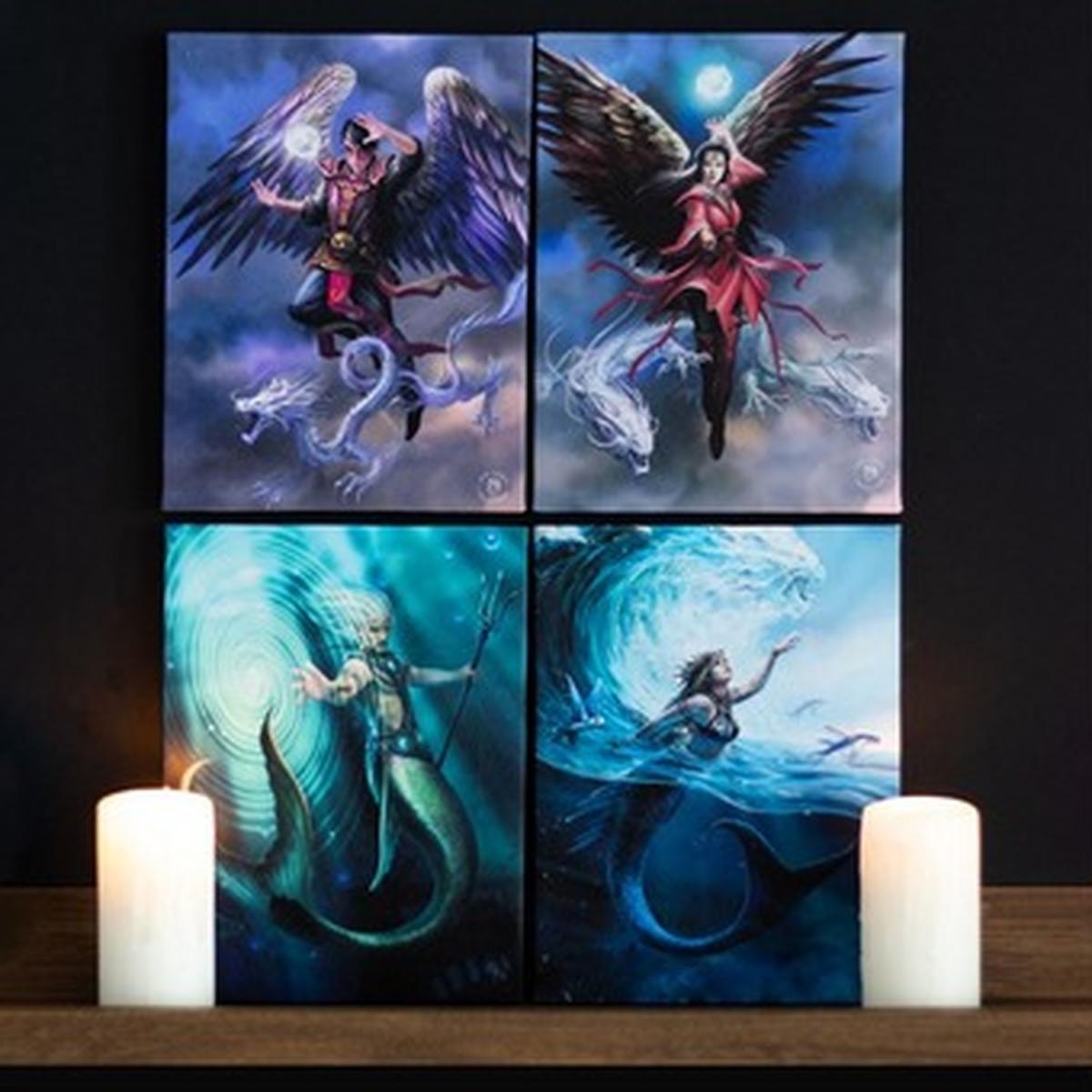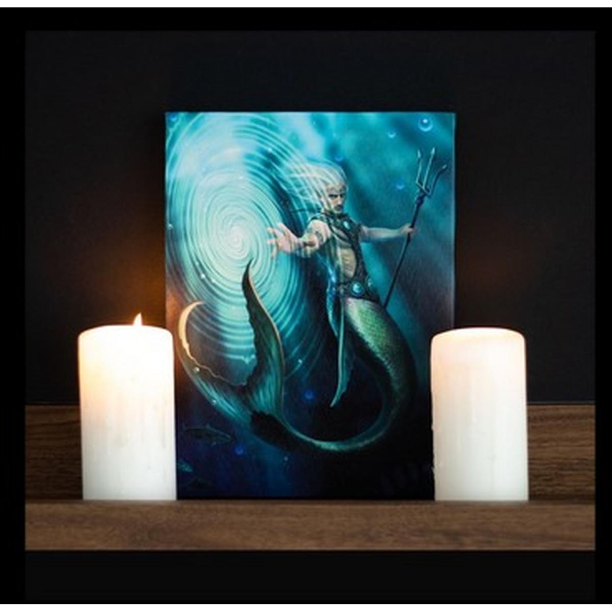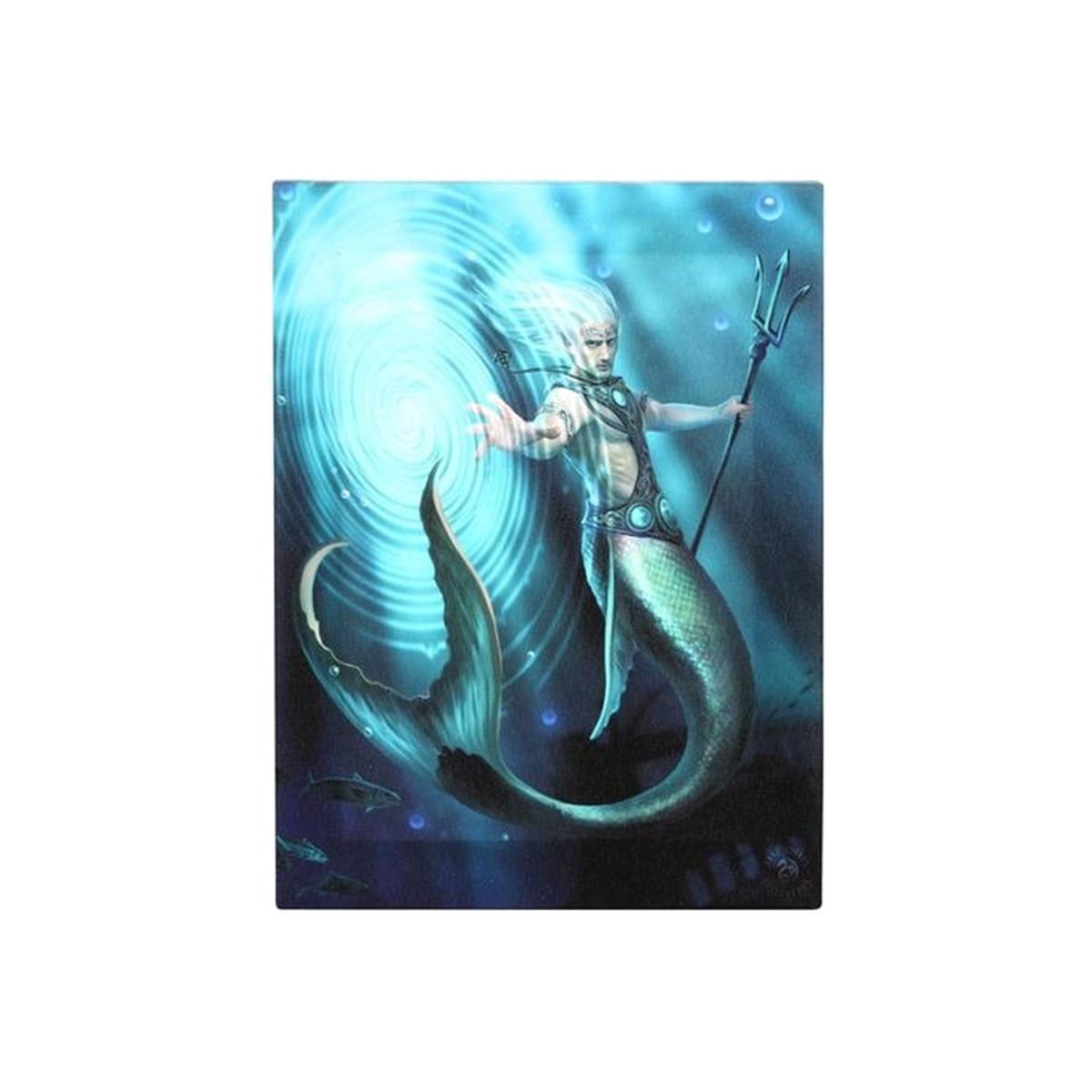 Canvas wall plaque featuring a high-quality, full-colour print of the Water Elemental Wizard artwork by fantasy artist Anne Stokes. Features a glistening merman spinning a small whirlpool of magic. Part of the 'Elemental Magic' art series by Anne Stokes.