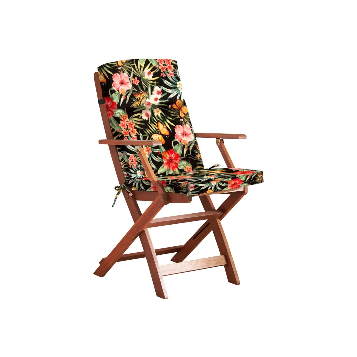 This stylish hinged backseat pad is perfect for outdoor summer seating, featuring a vibrant blossom pattern that adds a fresh touch to any space. Designed for both comfort and durability, it comes with foam filling for plush support and a tie-up ribbon along with an elasticated strap to keep the back pad securely in place. The overall length is 95cm, with a back pad measuring 53cm x 42cm and a seat pad measuring 42cm x 42cm, both 5cm thick. A water-repellent fabric ensures durability, while a zip fastening allows easy removal of the cover for machine washing.