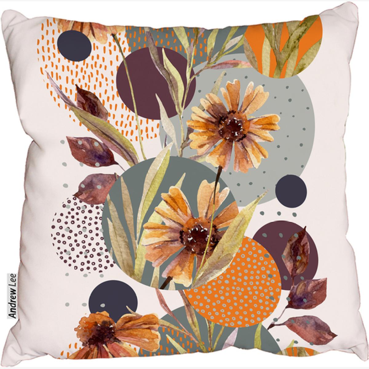 Watercolor Flowers And Leafs Cushion - Orange / 60cm