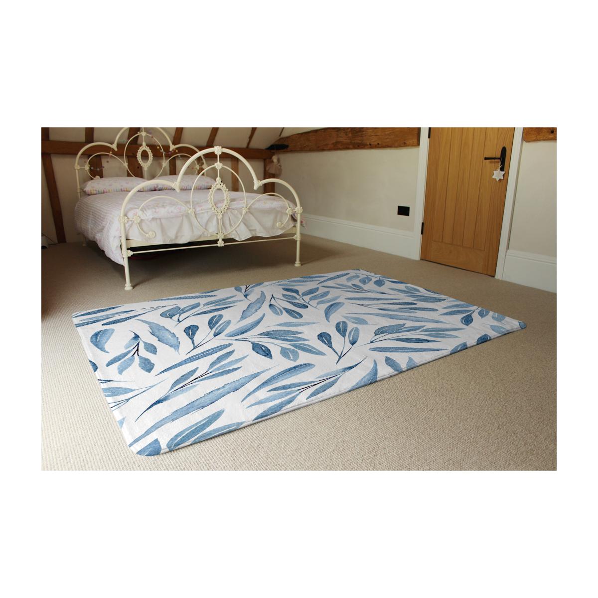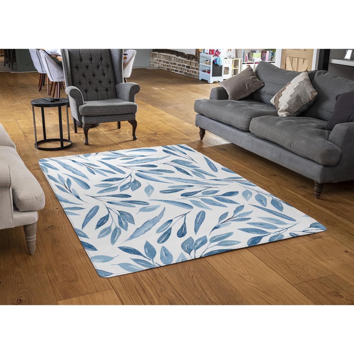 Watercolour Blue Branches With Leaves Designer Rug - Blue / 230cm