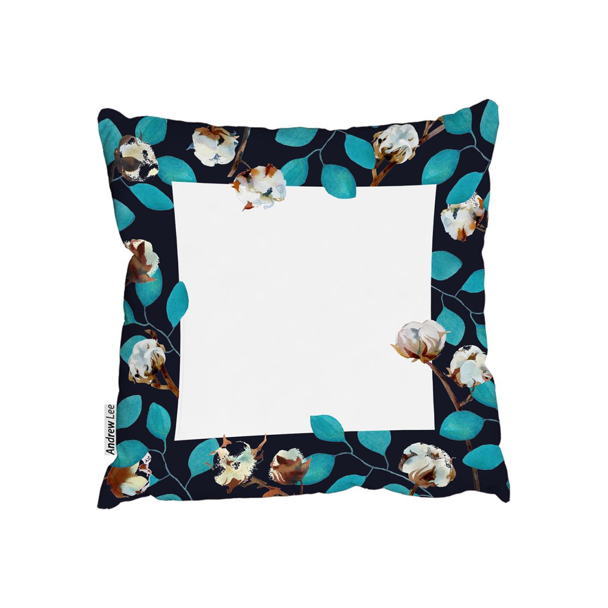 Watercolour Blue Leaf Frame Outdoor Cushion - Blue / 45cm