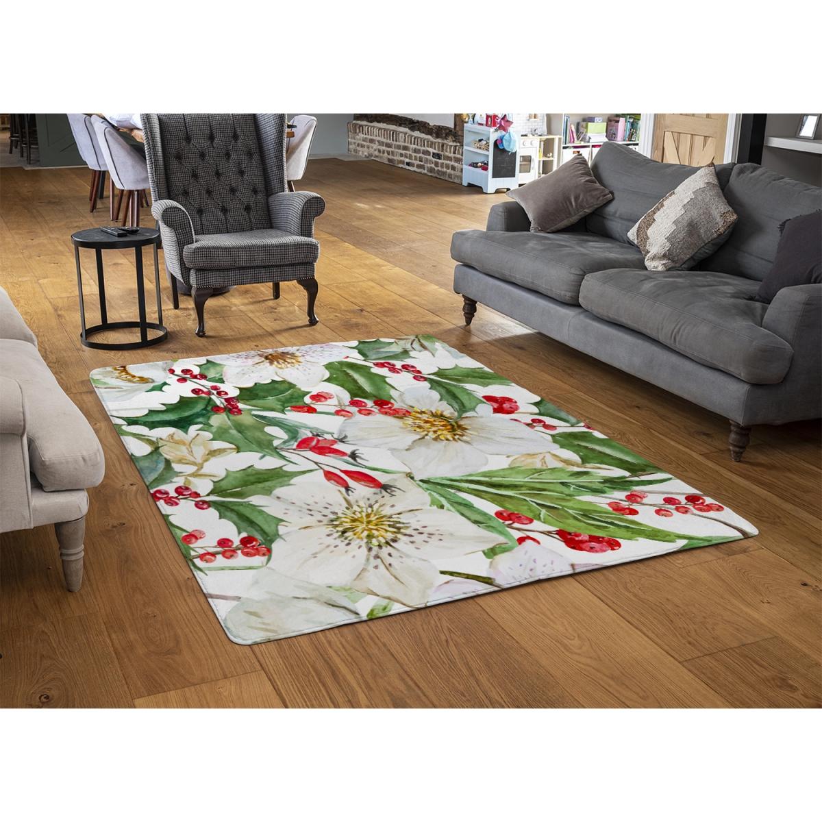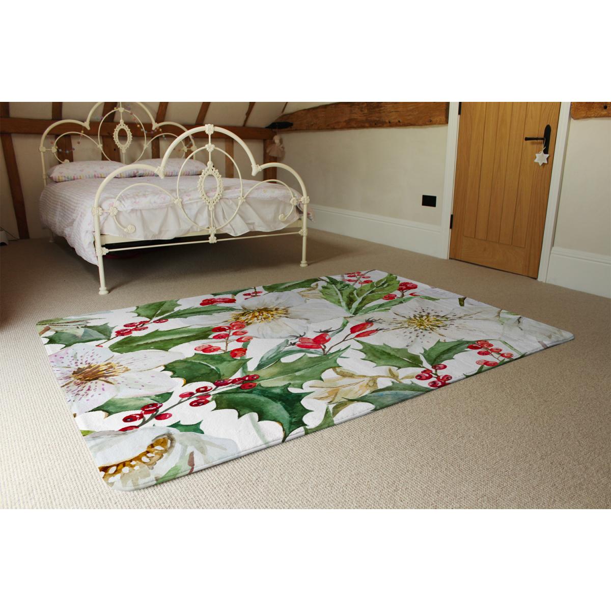 I love this festive rug for its vibrant watercolour design that really captures the holiday spirit. Its green and white palette is versatile, making it ideal for bedrooms, living rooms, or even a cosy dining area during Christmas. The size is perfect for adding a pop of seasonal colour without overwhelming the space. For styling, I’d suggest pairing it with neutral or complementary holiday-toned furnishings to let the pattern stand out. It works particularly well layered with textured throws or cushions to create a warm, inviting look, especially in more traditional or rustic interiors. Practical tip: since it’s relatively compact, it’s great for defining a seating nook or entrance space for a cheerful festive touch.