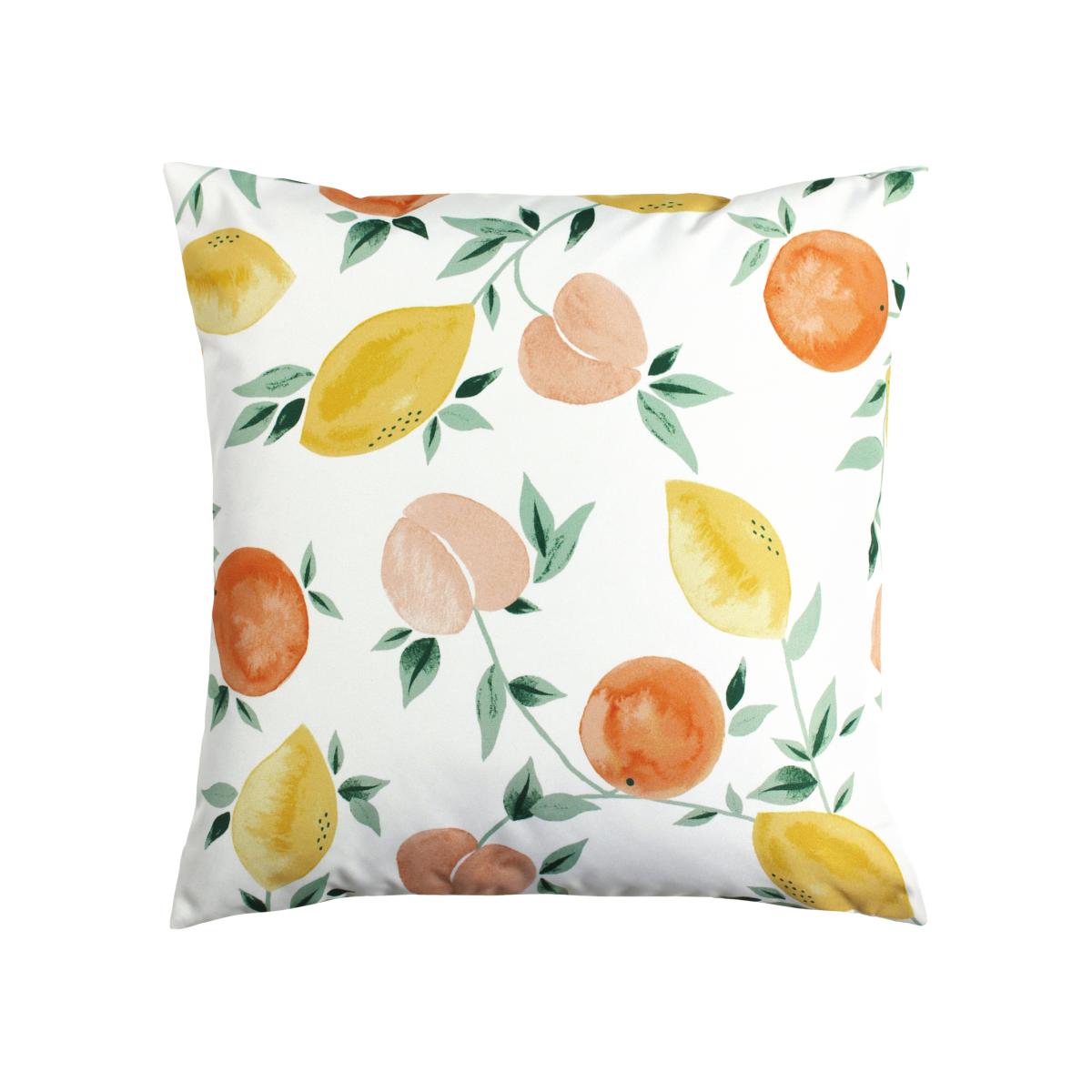 Featuring an abstract watercolour design of bright seasonal fruits and greenery. Add a pop of colour to you garden These summer. Featuring a bold watercolour print of seasonal fruits, These cushions are the perfect accompaniment for that outdoor experience.