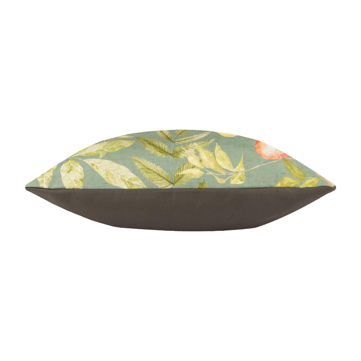 A delightful, slightly quirky cushion that features a wide-eyed Highland Cow, who has strayed into the nearby orchard to eat the tempting, refreshing fruit that grows there. Set on a lovely fresh, summery olive green background and printed on UV, water-resistant Polyester fabric. A beautifully designed cushion which adds a charming, natural touch to your outdoor space.