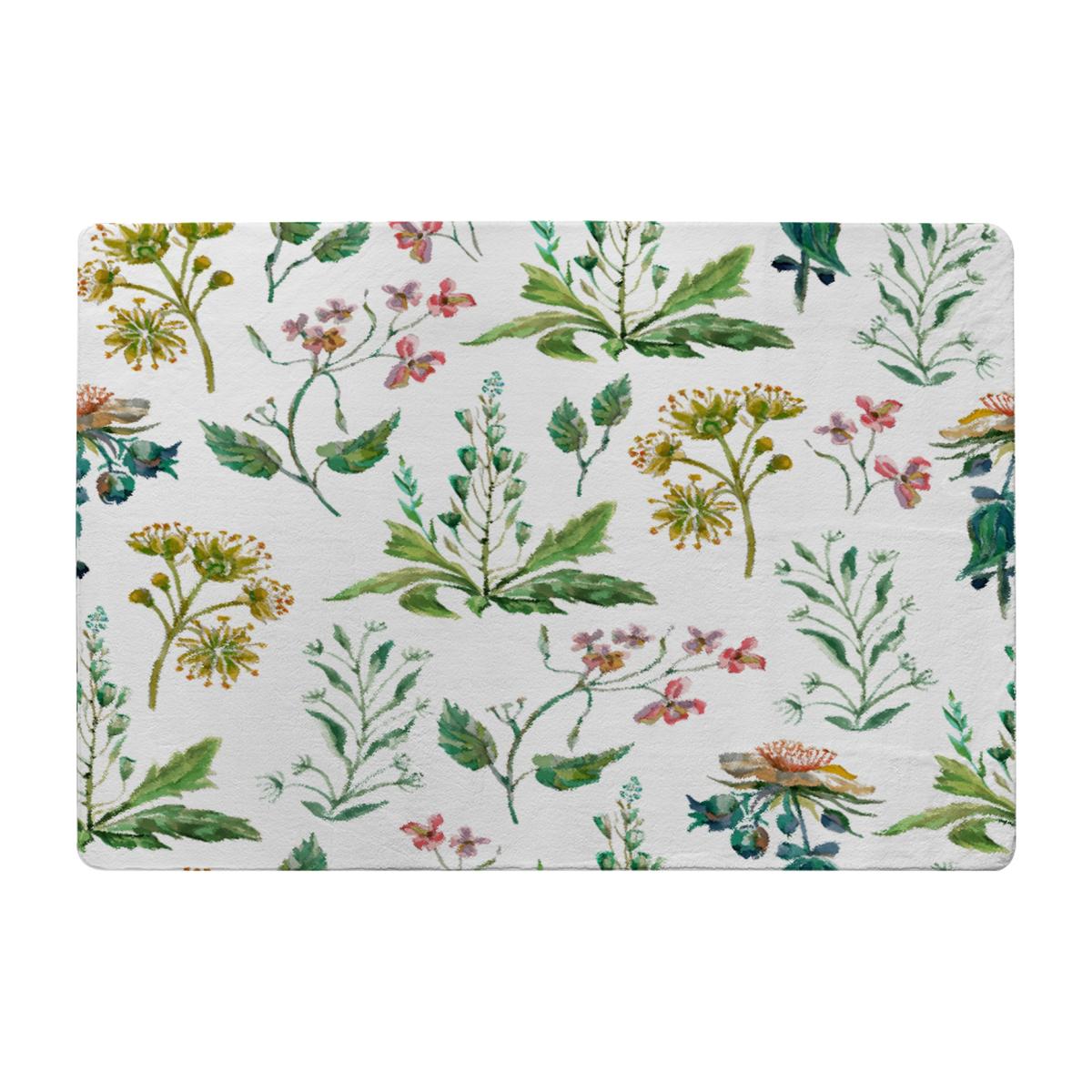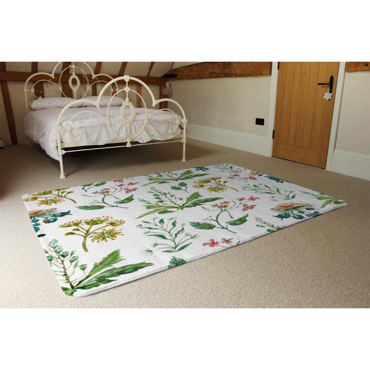 Watercolour Leaves Flowers Rug - Green / 110cm