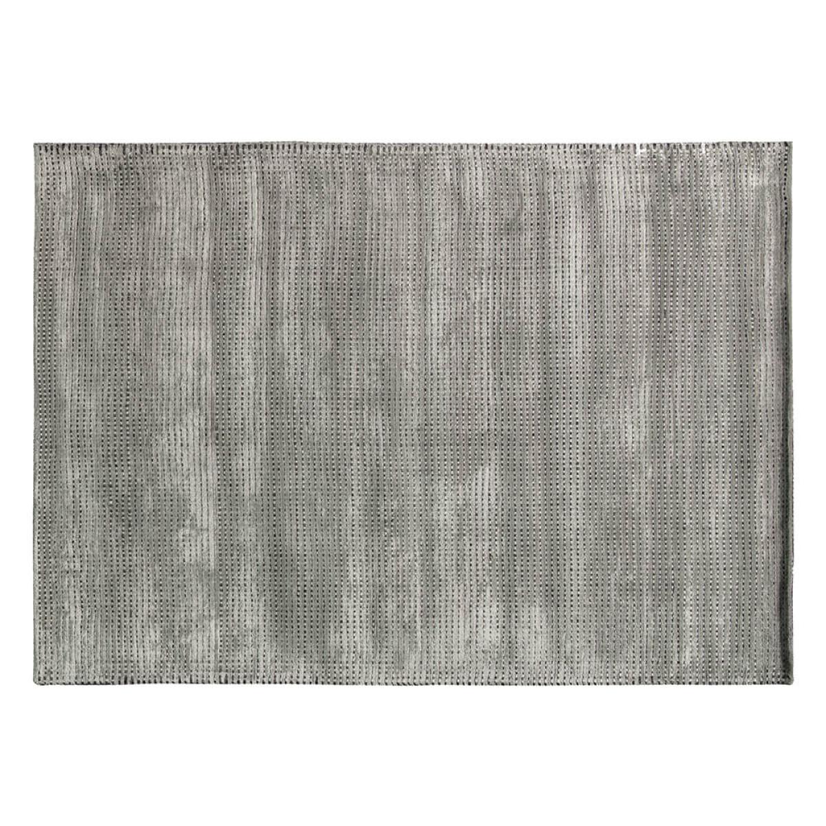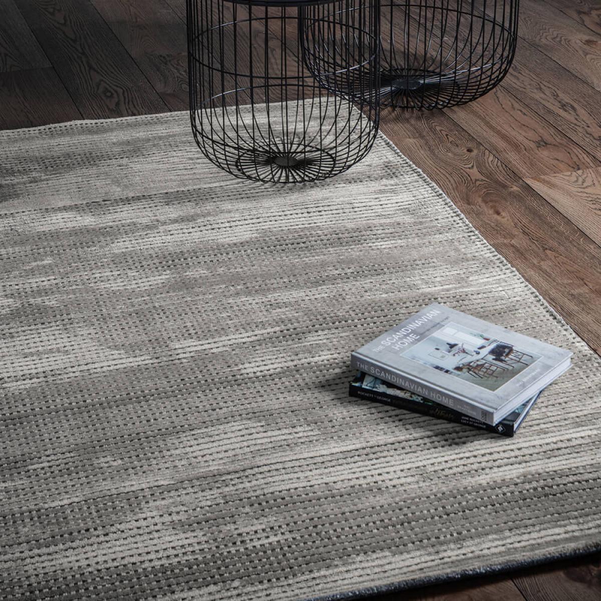 Adding this multi tonal rug to your home will likely stimulate conversation. A unique and memorable washed out design is created from hand woven short pile in a mix of viscose, polyester and wool. Benefits from a non-slip backing, is available in Silver, too.