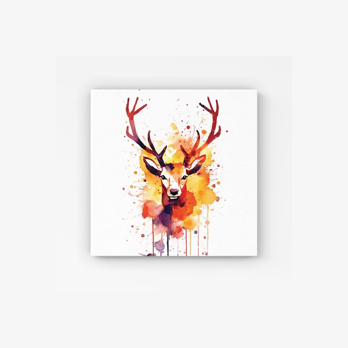 Watercolour Stag Face HD Metal Print - Orange / 30cm