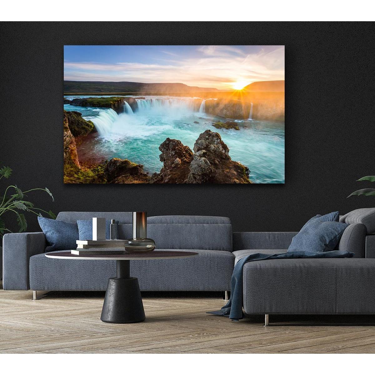 Read more about our stunning Waterfalls emptied into the sea wall art. Introducing our stunning canvas prints! These pieces are perfect for creating an artistic display in your home or office. Our high-quality canvases are crafted with quality materials and hand stretched on solid wood frames to ensure the artwork will last for years to come. Plus, we use archival inks to provide a fade-resistant print that wont lose its luster over time. Add a modern touch to your space and make a statement with one of these unique designs today!