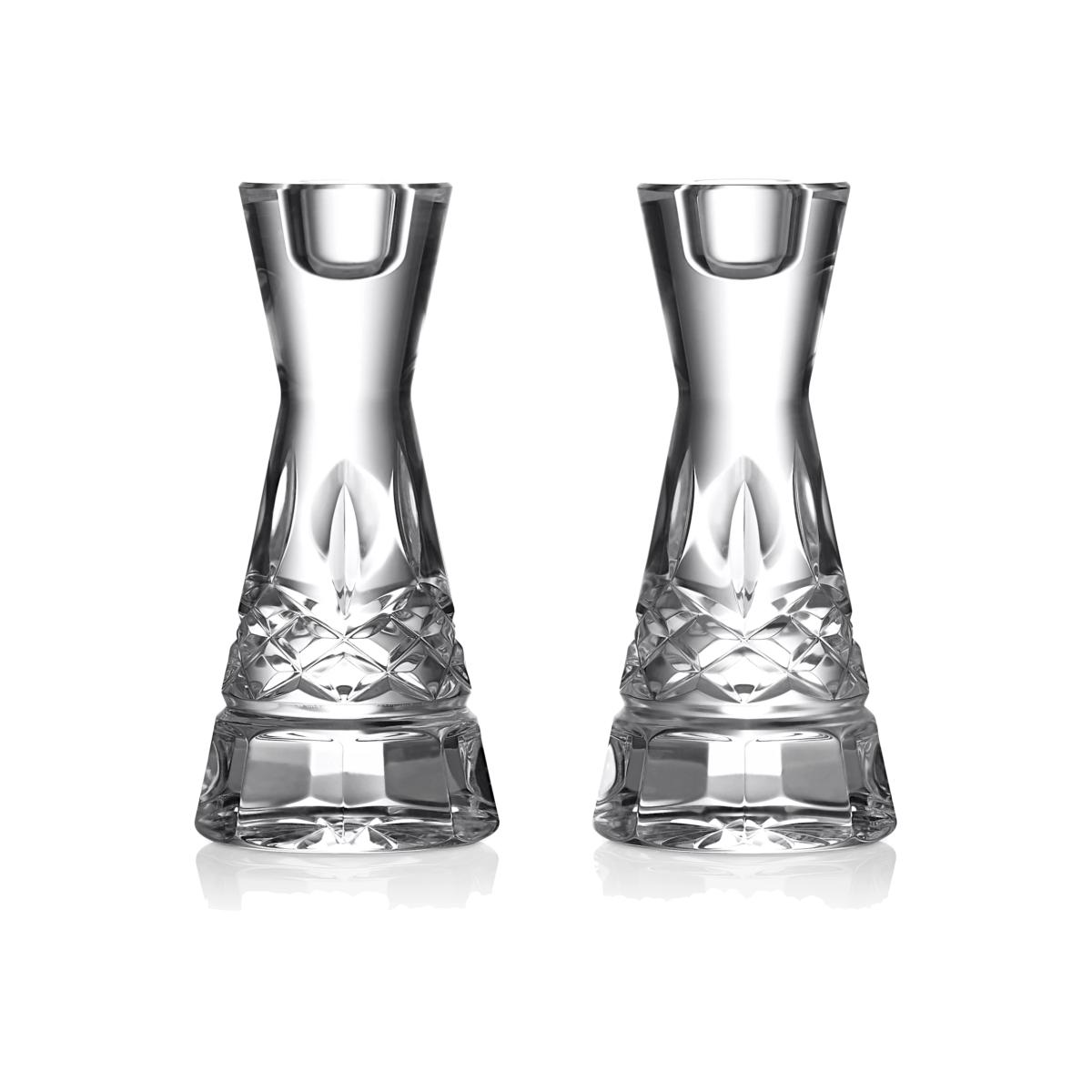 Pair of cut-glass candlesticks from Waterford. Lismore is one of the most recognisable cut-glass patterns in the Waterford archive. In 1952, Chief Designer, Miroslav Havel's reputation was forged with the creation of the Lismore pattern earning him the title 'the maestro of crystal'. The timeless pattern is inspired by the gothic architecture of Lismore Castle in Ireland. Over the years, Lismore has endured quite the design journey but the brilliance of the upright wedge cuts and diamond cuts remain the same.