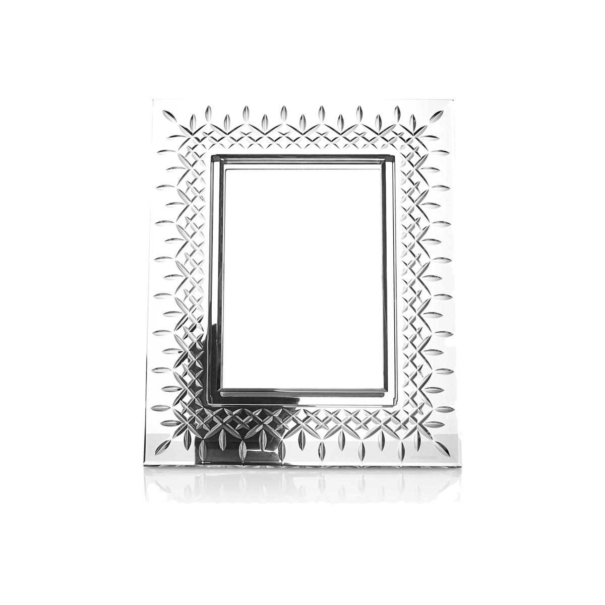 Cut glass Waterford Crystal photo frame for display vertically or horizontally. The cut-glass pattern takes inspiration from the extraordinary gothic elegance of Lismore Castle in Ireland. From its first introduction by Miroslav Havel in 1952, the Lismore pattern has matured into a unique and admired design, renowned for its sophisticated wedge and diamond cuts.