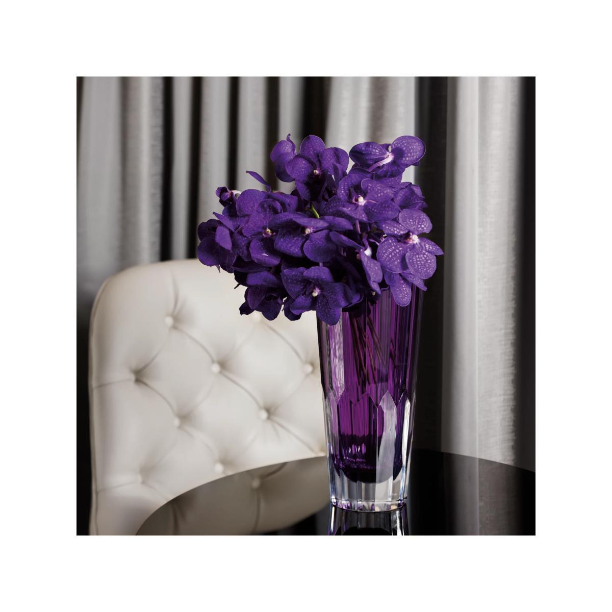 I love how this Waterford crystal vase has a bold presence thanks to its striking purple hue and elegant cut glass design. It's versatile enough to work in both contemporary and traditional interiors, adding a touch of luxury without feeling overly ornate. For styling tips, consider pairing it with simple, fresh flowers like white lilies or green foliage to let the colour and craftsmanship shine, or use it as a standalone sculptural piece. Its height makes it perfect for statement florals or even as a standalone decorative object filled with colourful branches or decorative grasses. This makes it both a functional and beautiful feature in any mantle, sideboard, or dining table setting.