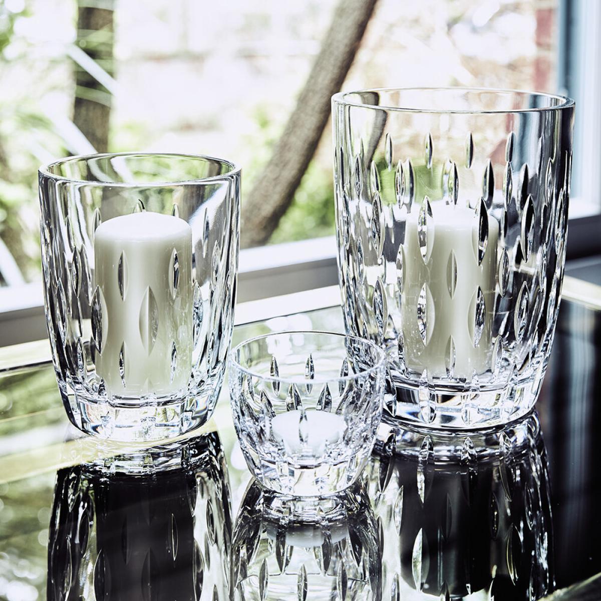 I love this Waterford hurricane for its timeless elegance and versatility. Its large size makes it an excellent focal piece on a dining table, mantel, or centrepiece, especially when filled with candles or fairy lights to add warmth. The textured pattern lends a subtle sophistication that works well in both traditional and contemporary interiors, pairing beautifully with rich fabrics or sleek modern decor. For practical styling, consider grouping a few with smaller similar pieces or layering with greenery or seasonal accents for added interest. It’s a practical yet stylish option that can enhance cosy corners or transform an understated table setting.