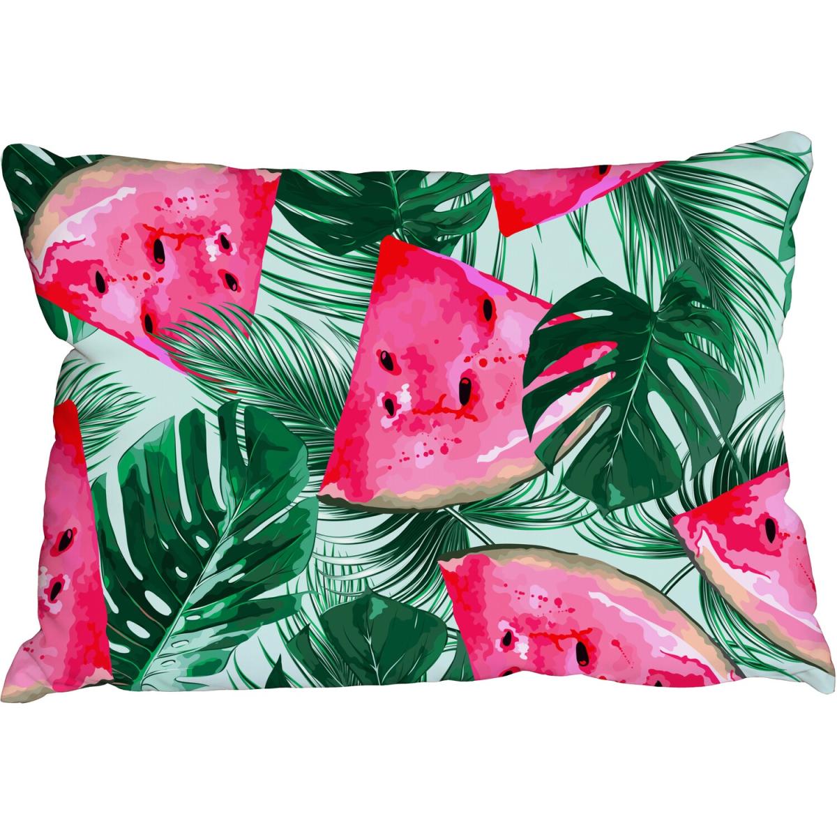 Watermelons and tropical palm leaves Outdoor Cushion - Pink