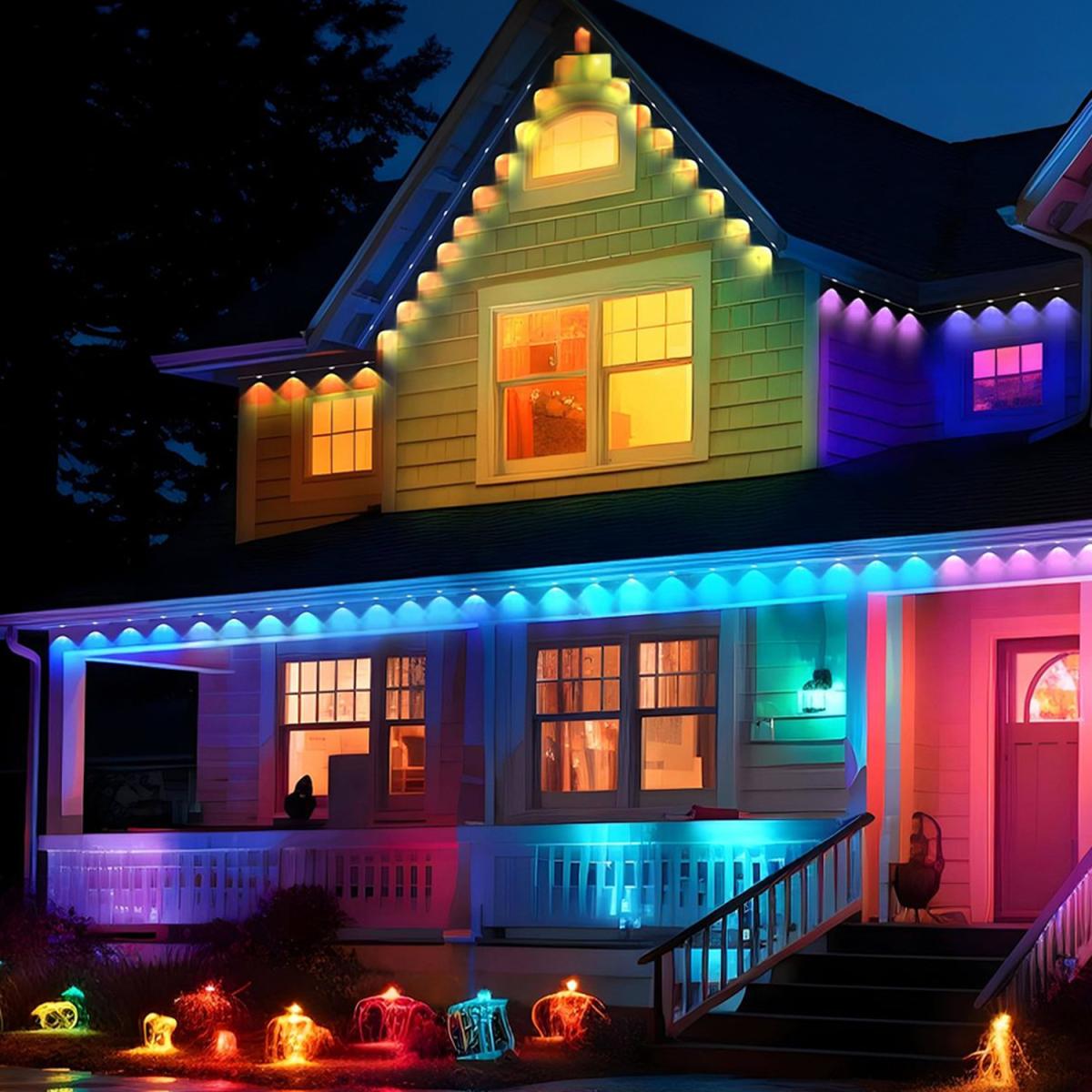 The waterproof eaves light blends modern design with functionality, making it an excellent choice for decorating outdoor spaces. Control it via an app or remote to manage on/off times, adjust brightness and speed, and switch between various RGB color modes to match different holidays or settings. It offers a range of lighting rhythm modes and effects to bring extra fun to your party. Plus, you can create personalized scene modes for various needs. Whether enhancing nighttime safety or adding a festive atmosphere, this eaves light is the perfect solution.