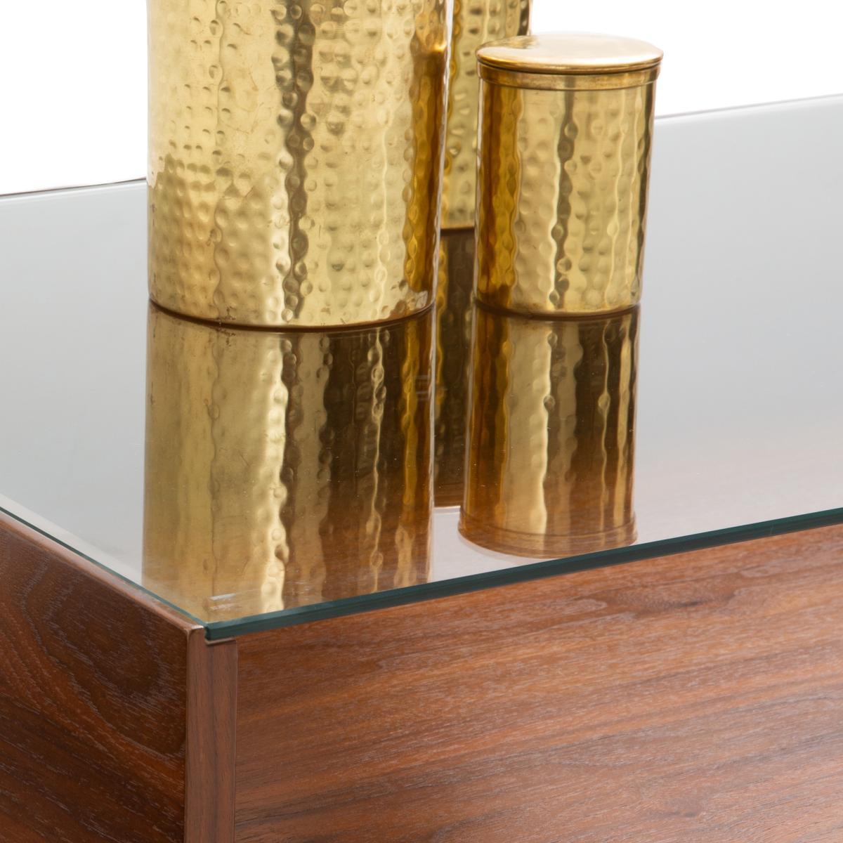 I really like this coffee table’s mix of walnut wood and glass, which creates a sleek, modern look with a touch of warmth. It works especially well in contemporary or minimalist interiors, but can also add a sophisticated edge to vintage or eclectic spaces. The glass top makes it practical-easy to clean and ideal for displaying decorative items-while the wood base adds visual interest and texture. For styling, consider placing some statement vases, books, or a tray on top, but also keep it uncluttered to highlight its clean lines. Pair it with leather or fabric sofas and minimal accessories to maintain a balanced, stylish setting.
