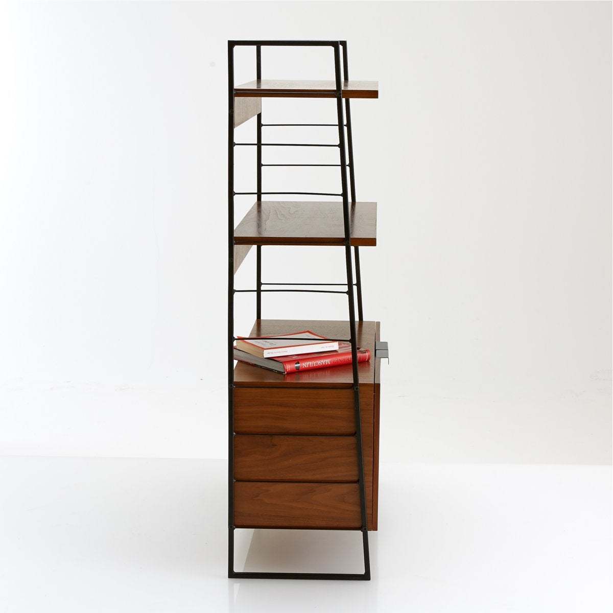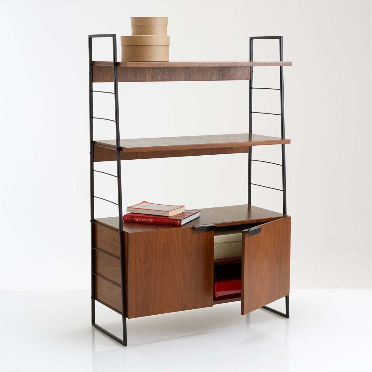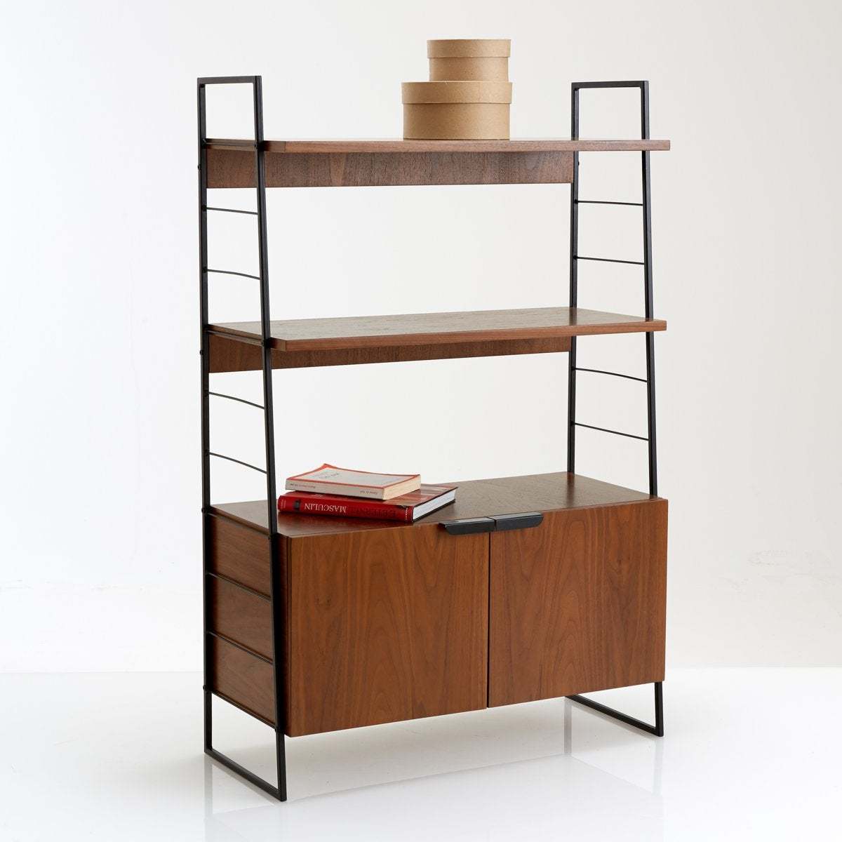 I love this piece for its clean, modern silhouette and the warm contrast between the steel frame and the walnut shelves. It’s super versatile and works well in contemporary or mid-century styled interiors, adding a touch of functional elegance. To style it effectively, consider layering books, decorative objects, and plants to create visual interest without cluttering. The cabinet at the bottom provides practical storage for less-displayable items, keeping the whole look tidy. It’s ideal for living rooms, home offices, or dining spaces where a mix of storage and display is needed, and its open design makes it easy to personalise with colour and texture.