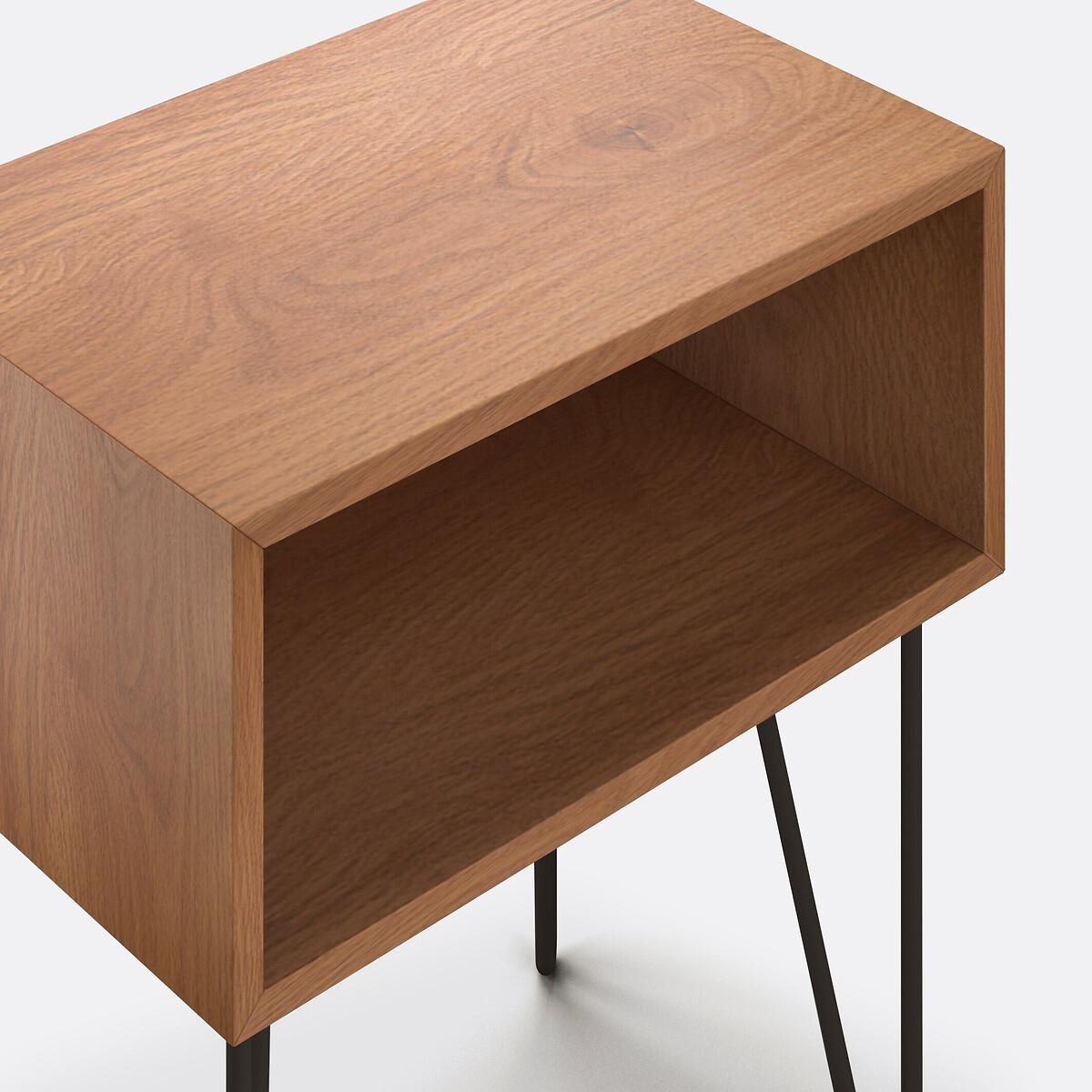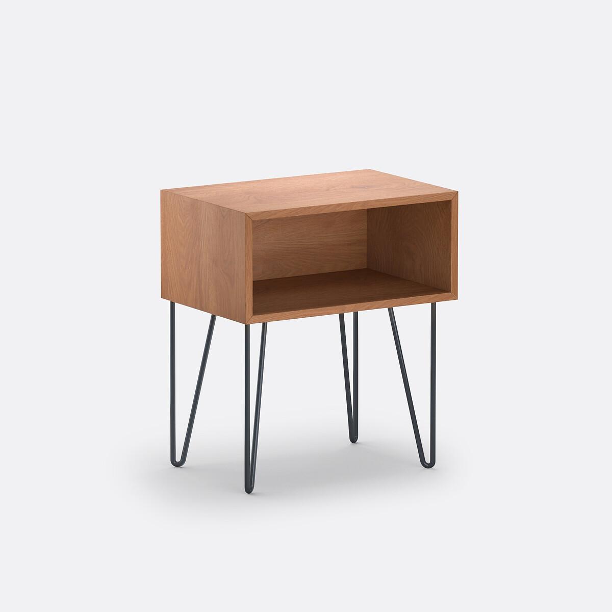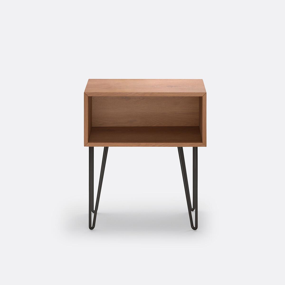 I love this little side table for its clean, minimalist look that pairs effortlessly with both contemporary and vintage-inspired interiors. Its natural wood finish adds warmth and texture, making it a versatile piece that can work in bedrooms, living spaces, or even a cosy home office corner. Practical styling tips include layering it with a small lamp, a stack of books, or some greenery to soften the modern lines. Its open shelf is perfect for easy access items or decorative touches, and the slim metal hairpin legs bring an understated industrial vibe. Overall, it’s a chic yet functional piece that can blend seamlessly into various interior styles while adding a touch of understated charm.
