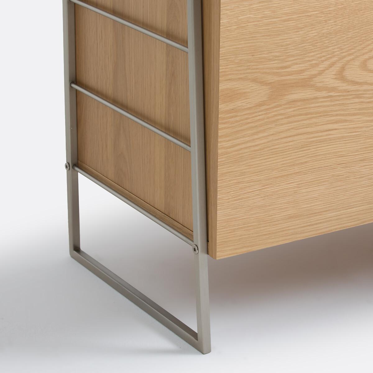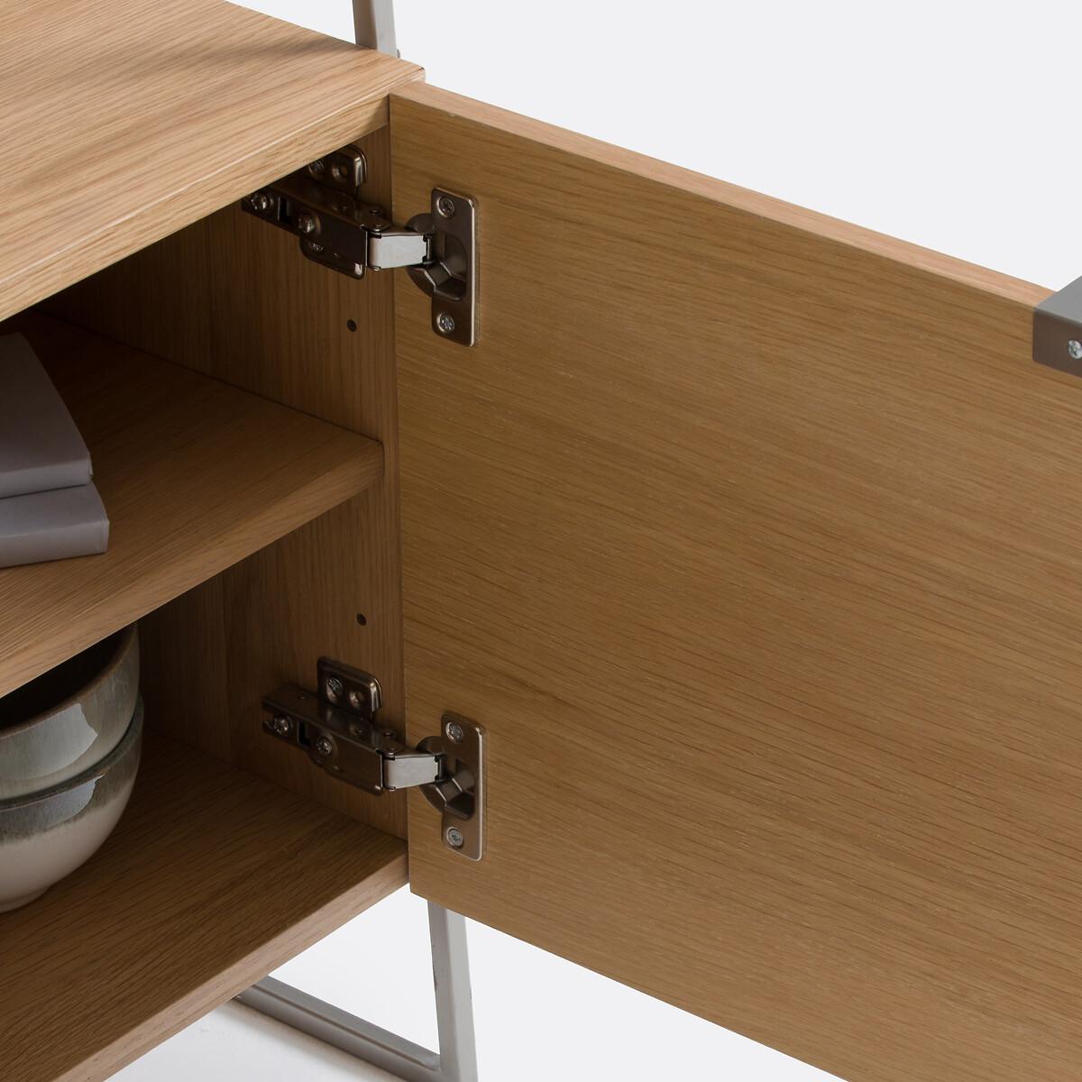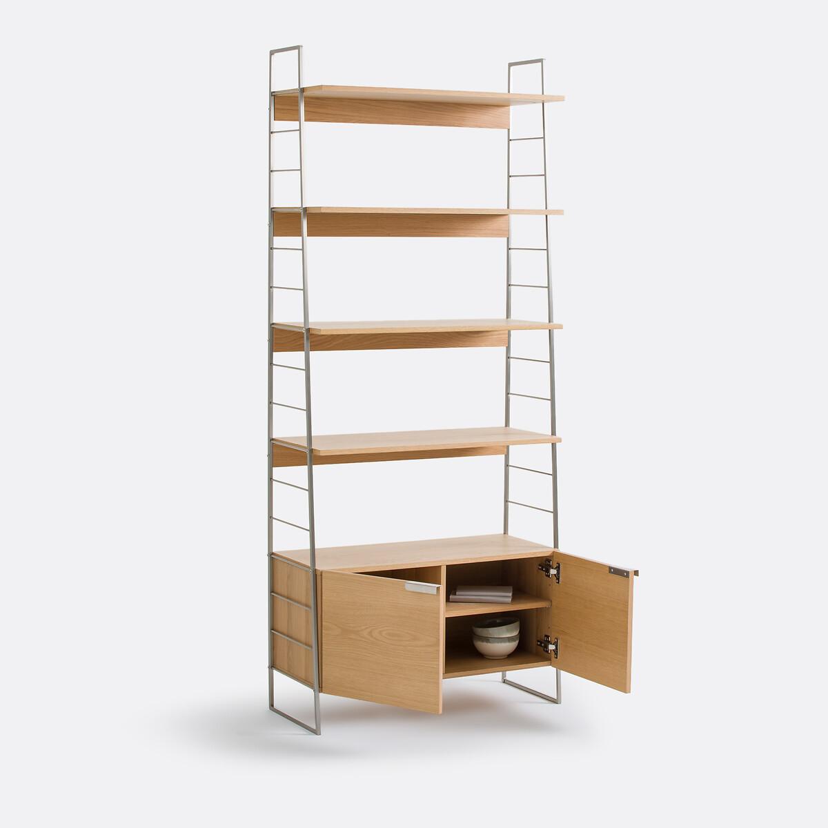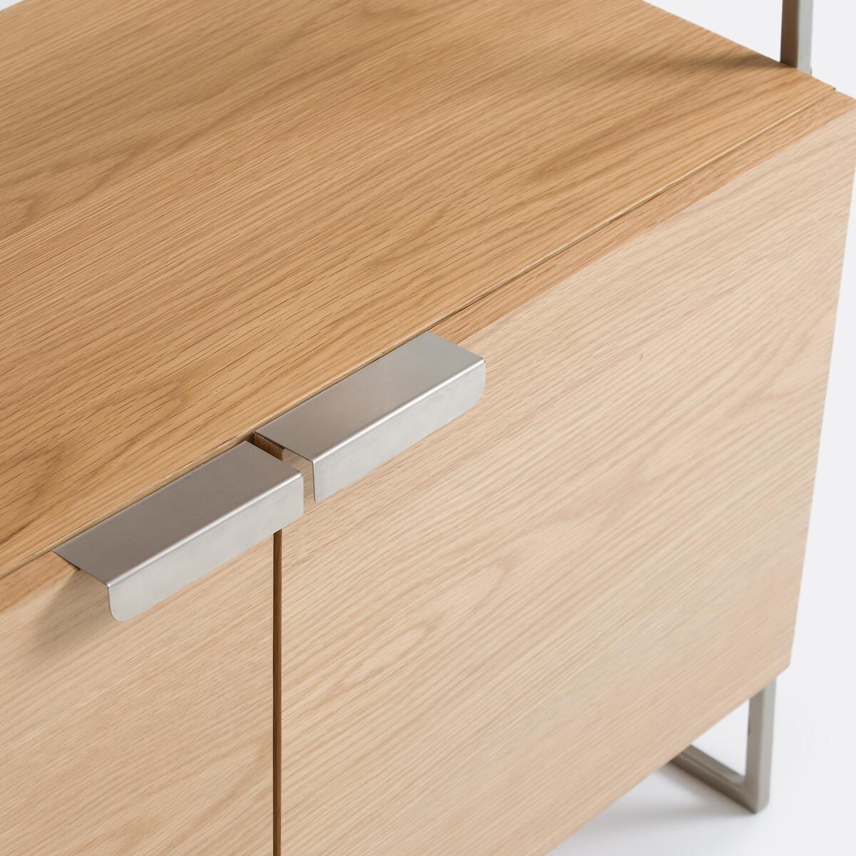Mix of materials. Inspired by vintage design. Made from oak and brushed chrome-plated metal, the Watford shelving unit will enhance your interior with its elegant, timeless lines. Enough to make you want to create a bookcase storage wall in the living room. Created by La Redoute Interiors. Product Details • Stainless steel side structure, brushed chrome finish • Oak veneered MDF box, nitrocellulose varnish finish • 4 shelves • 2-door storage box with soft-closing system, 1 large interior compartment • Stainless steel legs on both sides, brushed chrome finish • Solid oak central leg with polypropylene glide • FSC® Mixed certified wood Quality Info • Soft-closing : soft, silent door closing system, also preventing fingers from being trapped. Dimensions Overall • Width: 80cm • Height: 190cm • Depth: 34.5cm • Weight: 34.1kg. Usable space • Height between each shelf: 32cm • Outer compartment: W77.5 x D33cm • Compartment : W73 (2x36.5) x H31.4 (2x15.7) x D30cm. Delivery: • This product requires assembly. Available for home delivery. Note! Please ensure all passageways and doorways are wide enough. • WOOD FROM MORE SUSTAINABLY MANAGED FORESTS AND CONTROLLED SOURCES. FSC® Mix wood contains at least 70% FSC® certified and/or recycled wood, the remainder being FSC® controlled wood. Dimensions and weight of parcel2 parcels • W87.5 x H23.5 x D44cm. 31.6kg • W199 x H7 x D42.5cm. 8.2kg