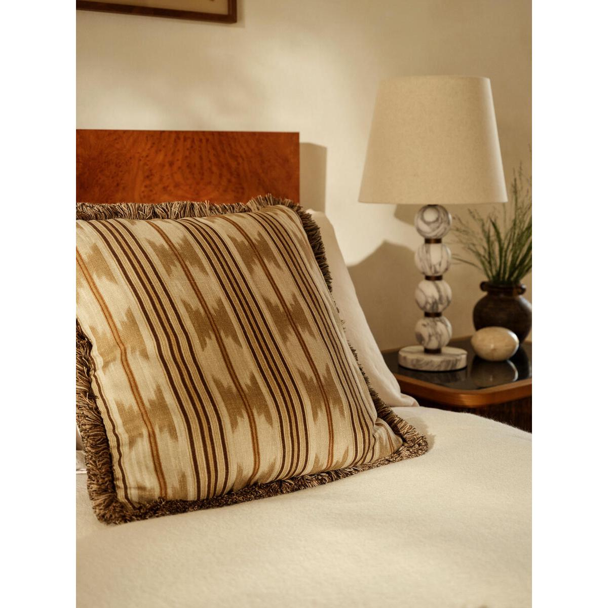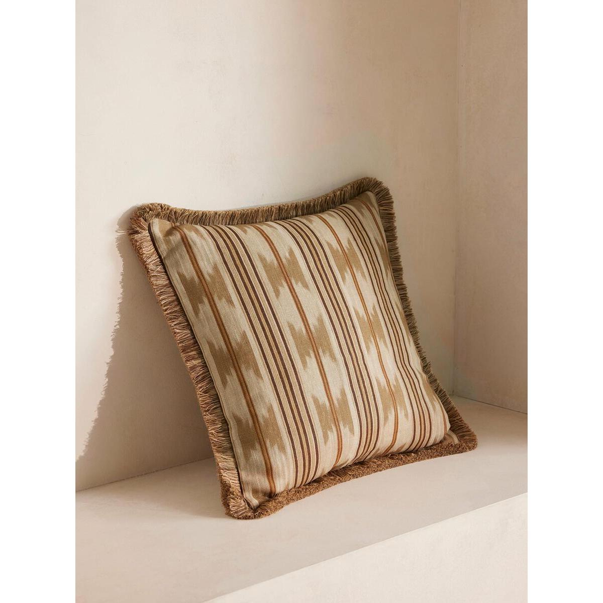 The stripe Ikat pattern of our Watkins cushion creates an easy layering piece for the home. Designed in-house, it draws inspiration from similar Ikat patterns found in Soho Farmhouse and has been digitally printed in Italy on a lightweight linen. Complement with other Ikat pieces from our collection. Double-sided stripe Ikat print Linen fabric Designed in-house Digitally printed in Italy Made in the UK Inspired by Soho Farmhouse