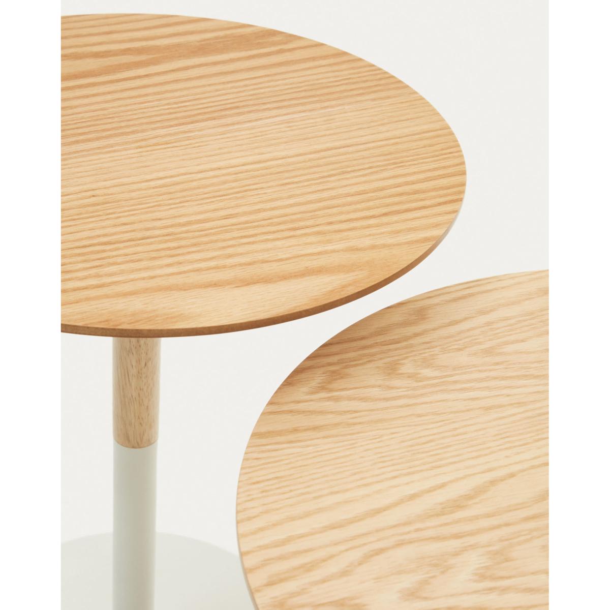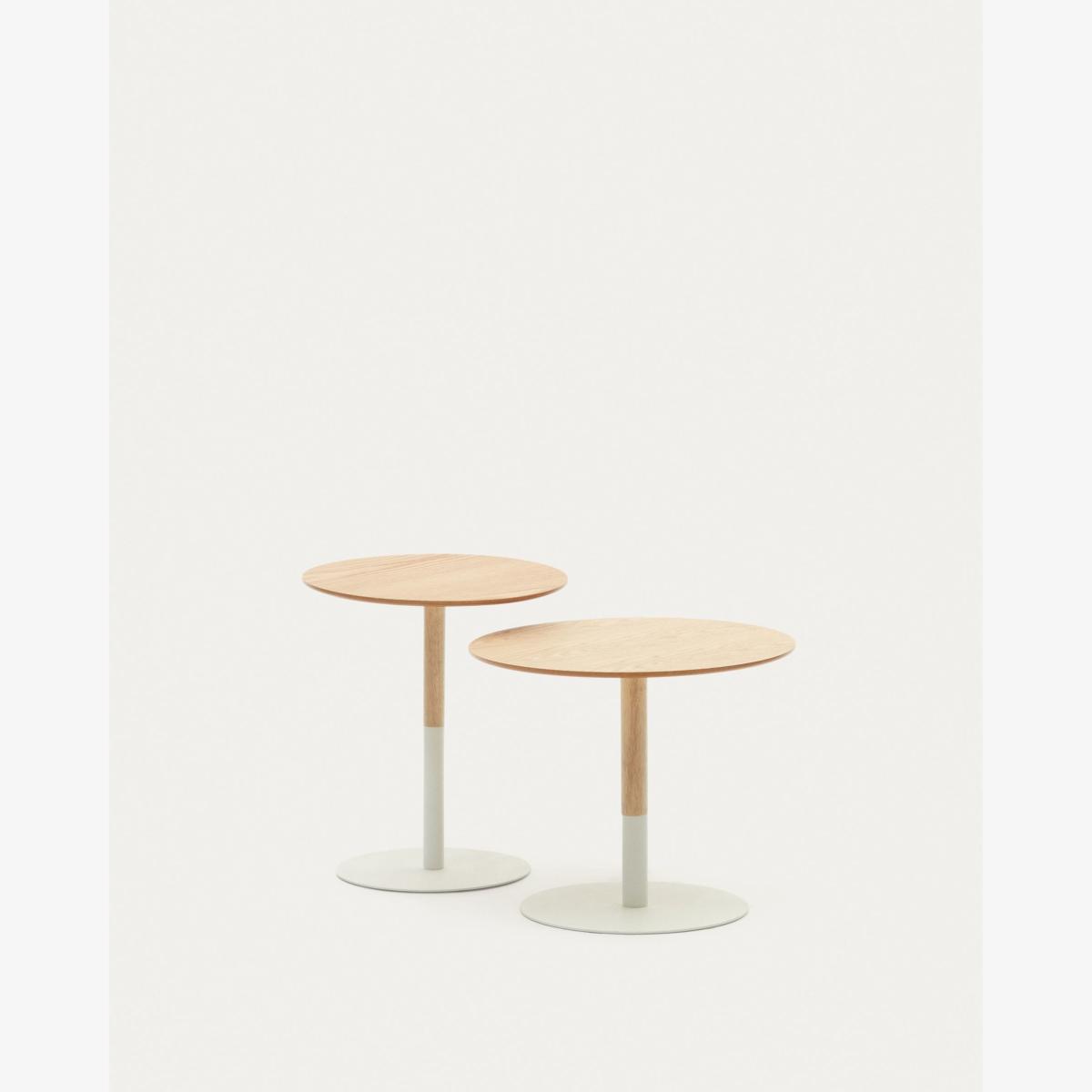 Watse set of 2 side tables in oak wood veneer and matte white metal, Ø 40 cm/Ø 48 cm