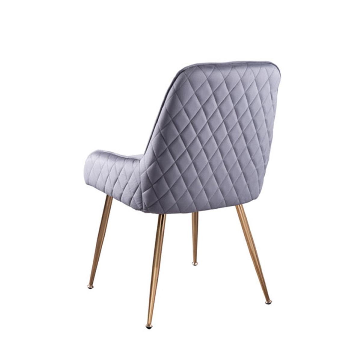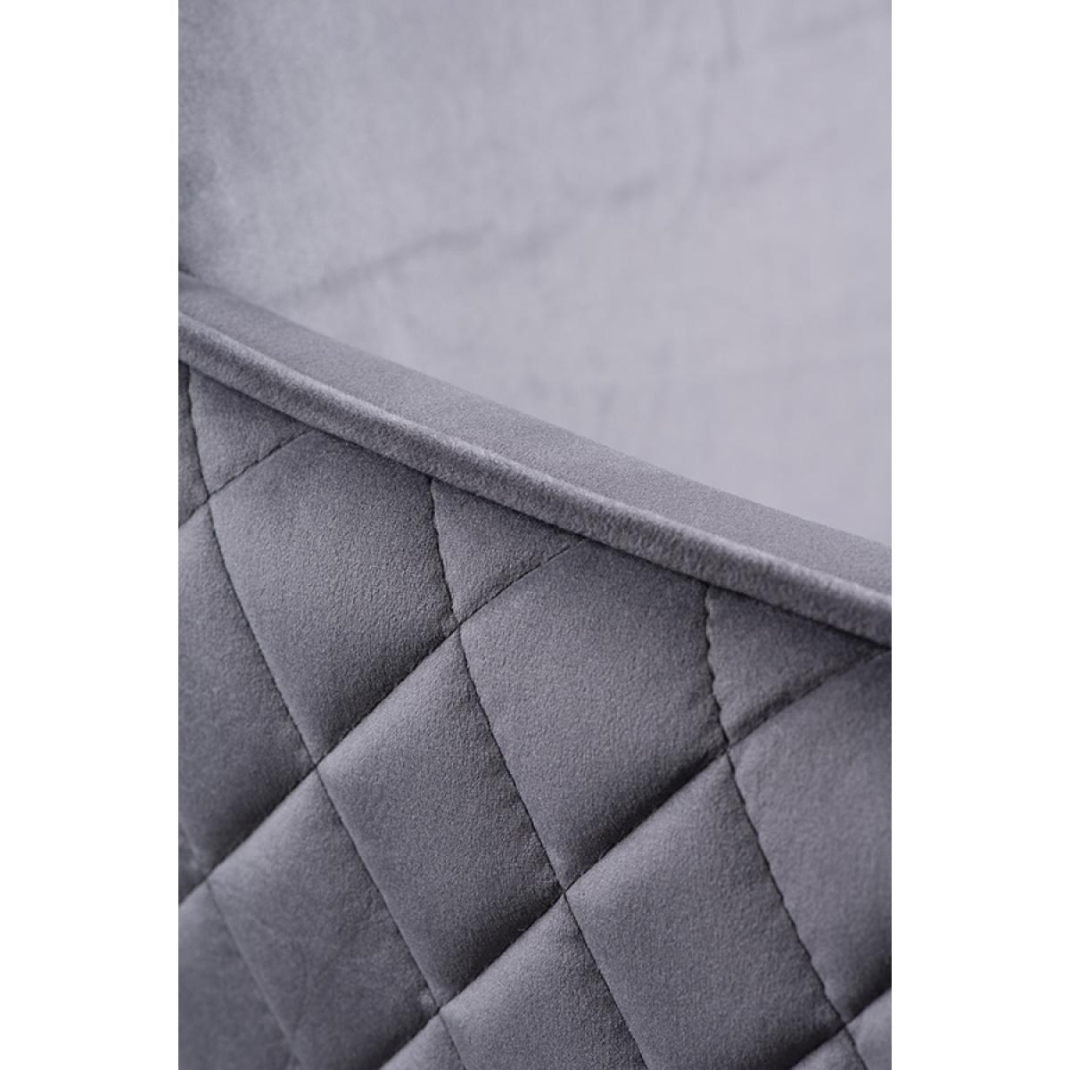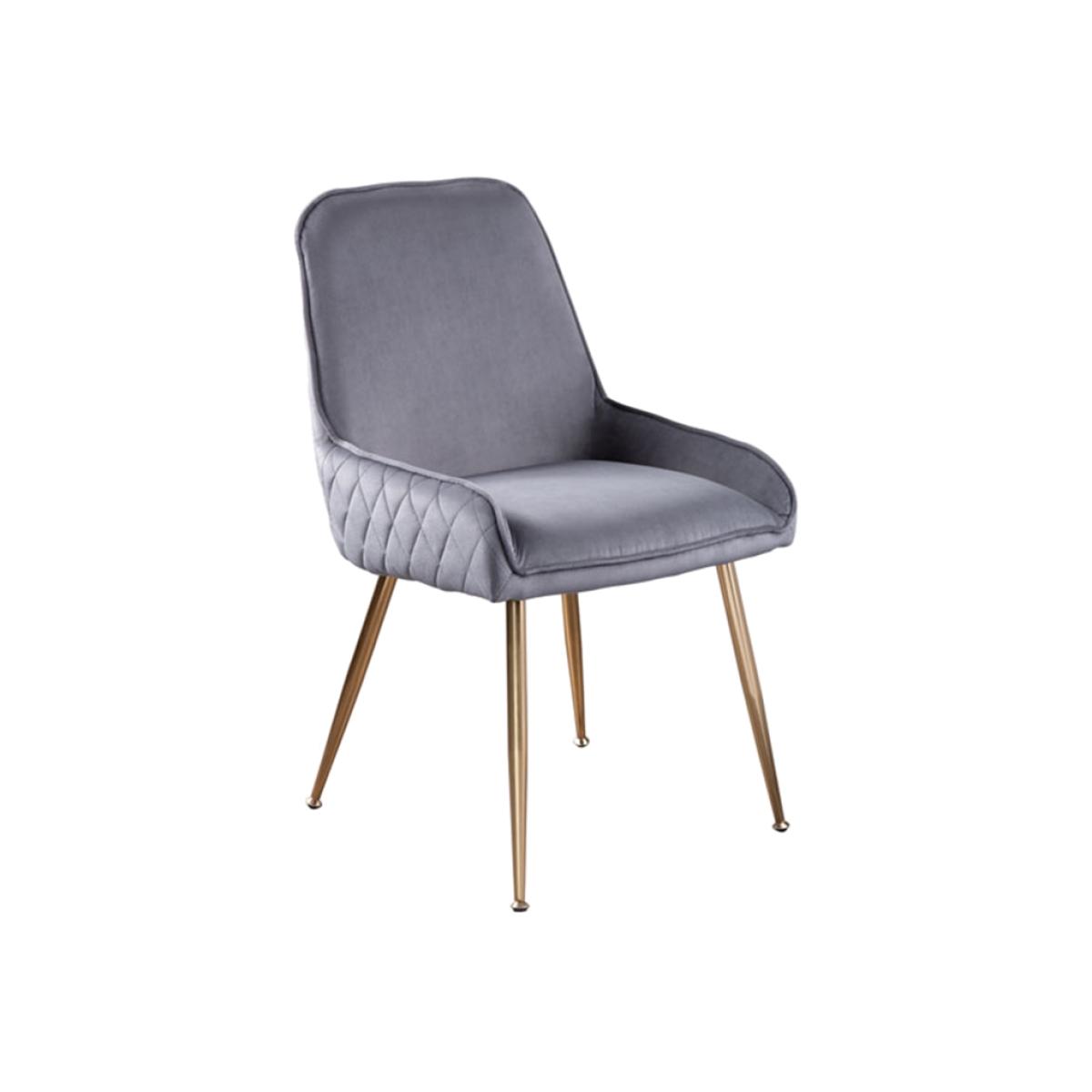An exceptionally comfortable chair. Good lumbar support. Distinctive diamond quilting to the exterior. Velvet upholstery fabric. Deep foam padding. Steel legs with brushed brass finish and adjustable feet.
