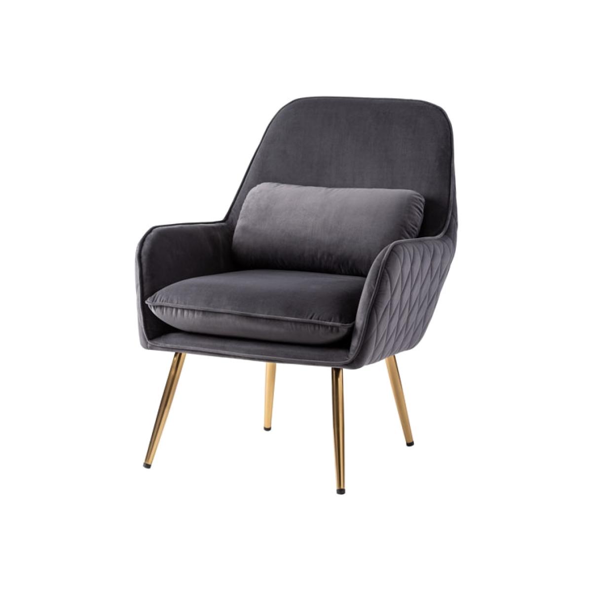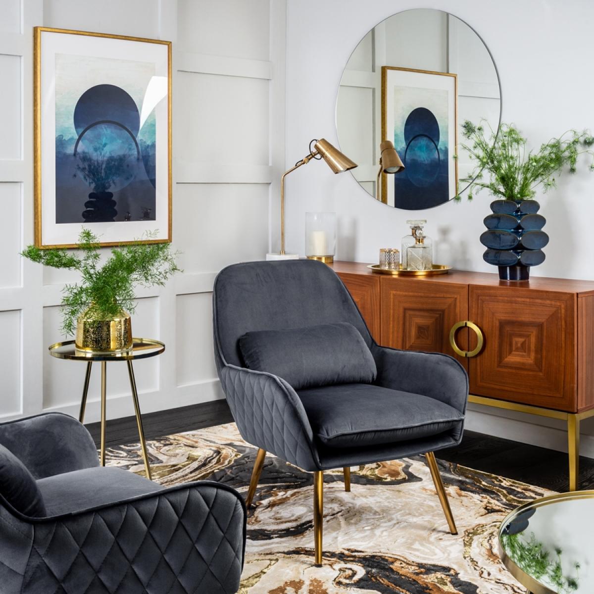 I really rate this grey armchair for its clean silhouette, quilted sides and warm brass-tone legs - it feels effortlessly modern without overpowering a room. It slots neatly into contemporary living areas, Scandi-style spaces or a chic home office. Styling tips: soften the dark upholstery with a light linen throw or patterned cushion for contrast, then pair it with a slim timber side table or a metal floor lamp to echo the leg finish. Tuck it into a reading corner beside a low bookcase, or let it stand alone on a neutral rug to create a simple yet polished focal point.