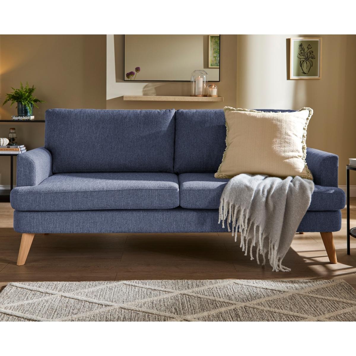 Simple and elegant, the Watson three seater sofa exudes understated charm. The clean lines and gently curved armrests makes Watson a truly stylish addition to your living room. Upholstered in a soft touch denim blue woven fabric and complete with foam and fibre filled back and seat cushions, this classic sofa is the perfect seat to relax in.