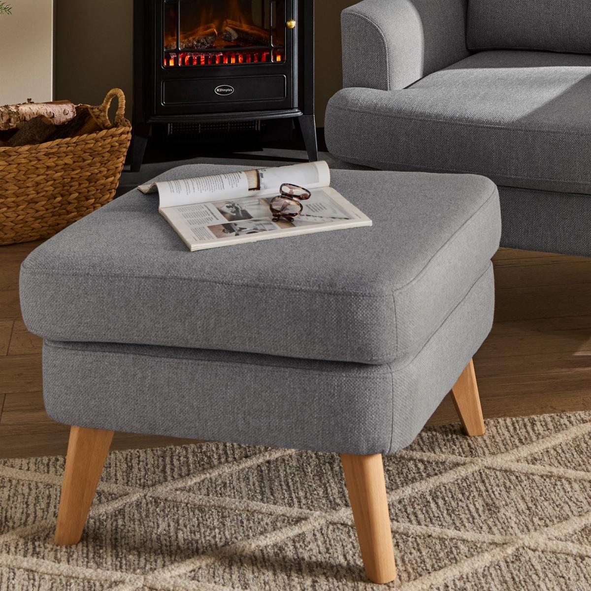Simple and elegant, the Watson footstool exudes understated charm. The clean lines and padded cushion makes Watson a truly stylish addition to your living room. Upholstered in a soft touch mid grey woven fabric this classic footstool is the perfect place to rest your feet.
